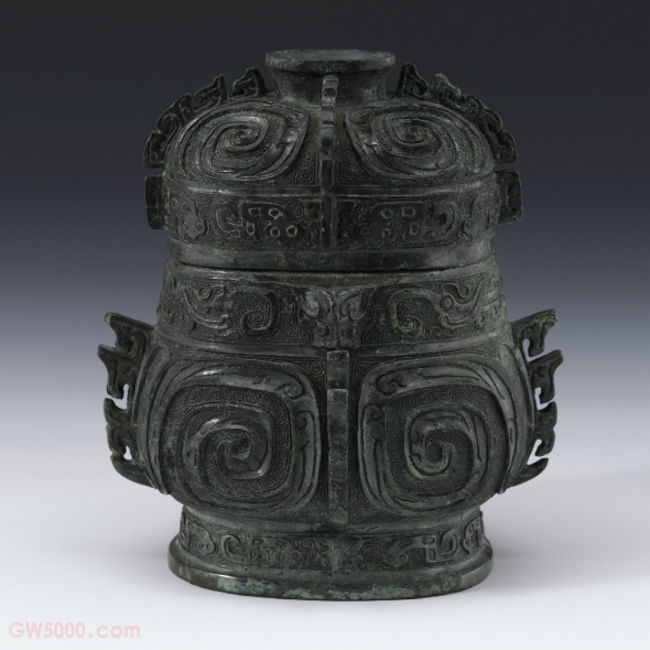 器盖和腹部均匀地设四条钩曲的棱脊,使器形略显宽大。盖沿及圈足饰对称曲折体的蛇纹,器颈中央设一浮雕兽首,两侧饰对称鸟纹,弯曲的鸟喙特长,盖面及腹部饰对称卷体兽纹,仅存蟠曲的躯体和尾部,省略了头部。器盖同铭四行十四字,记载了(qǐ)仲为倗生作饮壶,并祈求三寿和美德。由于铭文中器物自名的“饮壶”,可知这类器物并不是盛酒的壶,而是作为饮器。