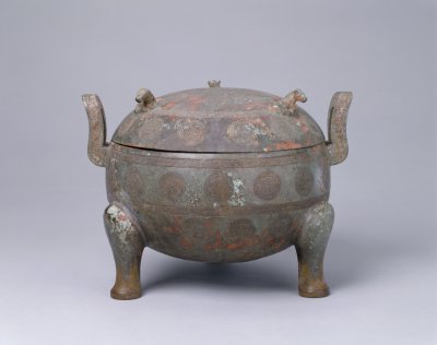 商周时期青铜器的一种,原为食器,用以烹煮或盛放肉食,后逐渐成为祭祀、征伐、丧葬等活动中陈设的一种礼器。同时,鼎也是贵族进行宴飨、祭祀等礼制活动时最重要的礼器之一,所谓“钟鸣鼎食”,即指代贵族。此外,鼎也被作为王权的象征,《左传》宣公三年记楚庄王问鼎中原,即窥视中原王权之意。鼎数目的多寡有着严格的等级区别。即:天子九鼎,诸侯七鼎,大夫五鼎,士三鼎。