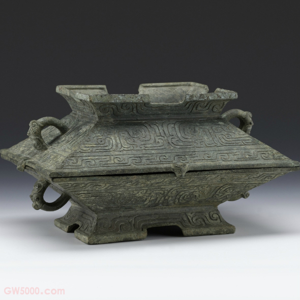 簠是盛放饭食的器皿,基本形制是大口斜壁长方形,器与盖对称,形状大小相同,合起来为一器,分开可做两器使用。簠在西周中期开始出现,盛行在西周晚期和春秋战国时期,秦汉以后基本消失。