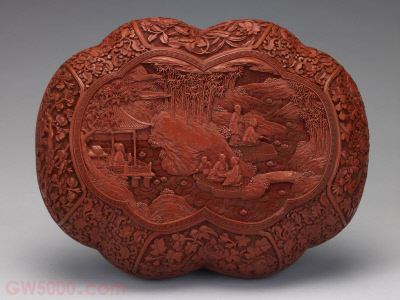剔红兰亭宝盒与剔红流觞宝盒盖面的曲水流觞图几乎完全相同,显系出自同一稿样。查阅清宫档案可以发现,皇帝认为款式或纹样好的器物往往要求造办处留样,以备日后再做类似款式时使用。雕漆品种之一,又名“雕红漆”或“红雕漆”。此技法成熟于宋元时期,发展于明清两代。明黄成《髹饰录·坤集·雕镂第十·剔红》中写道:“剔红,即雕红漆也。……宋元之制,藏锋清楚,隐起圆滑,纤细精致。”其法常以木灰、金属为胎,在胎骨上层层髹红漆,少则八九十层,多达一二百层,至相当的厚度,待半干时描上画稿,然后再雕刻花纹。一般以锦纹为地,花纹隐起,华美富丽。根据漆色的不同,有剔红、剔黄、剔绿、剔黑、剔彩、剔犀之分,其中以剔红器最多见。 旧时汉族岁时风俗,流行于我国多数地区,为夏历三月三日上巳节期间的一种游戏活动。觞,即酒杯,一般为木制,故可在水中飘浮。每年三月三上巳节,人们坐在环曲的水渠旁,在上游放置酒杯,任其顺流而下,杯停在谁的面前,谁即取饮,以此为乐,故称“曲水流觞”。此俗起源甚早,周代已有。晋永和九年三月初三,王羲之等在会稽(今绍兴)兰亭修禊,他们吟诗、饮酒,遂作《兰亭集序》:“又有清流激湍,映带左右,引以为流觞曲水。”清代次俗限于宫廷举行。今北京潭柘寺、中南海均存“流杯亭”之建筑。