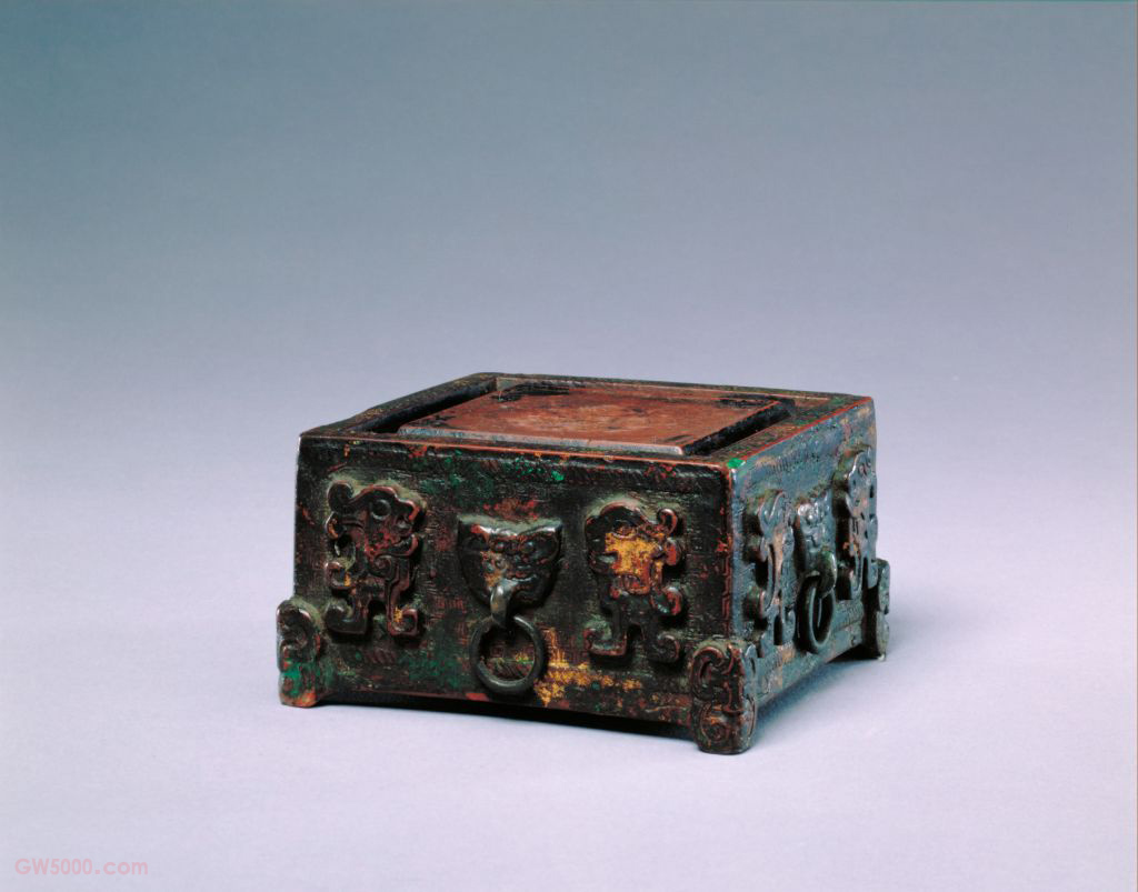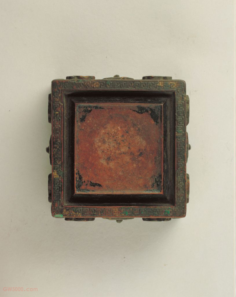 御铭澄泥仿古石渠砚,清乾隆,长7.9厘米,宽8厘米,高4.8厘米。清宫旧藏。 砚为澄泥烧制而成,造型为正方形。砚面周环曲水,边沿雕饰勾云纹。侧面浮雕兽面衔环铺首,四角为兽面小足。砚外底刻篆书“贻子孙”三字,并环刻乾隆帝御铭:“方盈寸有半,围以渠而周。铜乎石乎泥乎,合一相阅千秋。边幅虽小,其用无穹,如寸田赞化工。乾隆丁酉春御题。”并“太璞”印。丁酉为乾隆四十二年(1777) 澄泥砚的制作始于唐而兴于宋,宋人苏易简《文房四谱》记述了澄泥砚制作方法,其工序颇为繁细。清乾隆时期内廷造办处及苏州织造等仍有仿古澄泥砚的制作。 此砚造型古雅,色如紫玉,细润而坚,为清乾隆朝仿古砚之佳品。 西汉高祖四年(前200年),萧何在未央宫正殿北(今西安市未央区柯家寨村西)建造国家藏书机构,以收藏入关所得秦之律令、图籍。其下砌石为渠以导水,因称“石渠阁”。宣帝甘露三年(前51年),诏太子太傅萧望之,诸儒韦玄成、施雠、梁丘临、戴圣、刘向等,于阁内讲五经异同,增立博士。至成帝时藏秘书于此。此后,“石渠”便成为皇家收藏图书典籍之所的专称。在平面上雕出凸起的纹饰或物象的一种雕塑。按凸起高度的不同,可分为高浮雕、深浮雕、浅浮雕等,也有几种雕刻技法结合使用的形式,多见于高精繁杂的雕刻作品。 衔接门环的底座式装置。多为金属制,故又称“金铺”、“铜蠡”。以兽面衔环状为主,亦称“兽环”,还有龟、蟾等多种形式,取其吉祥祛邪的象征意义。铺首作为装饰,在商周时已见于铜器之上,可能尚早于用以为门饰。皇后、皇贵妃、贵妃、妃的生日。即以过滤的细泥为材料制作而成的研墨器具,属陶砚一类。澄泥砚的制作起于唐而兴于宋。其制作方法借助于古代制作砖瓦陶器之工艺,将泥土经过澄滤,去粗渣沉淀以后加一些固剂,经制坯煅烧而成。澄泥砚质地坚硬耐磨,易于发墨,不损毫,不耗墨,堪与石砚相匹敌。一些古籍文献中还将澄泥砚、端砚、歙砚、洮河砚并称为我国四大名砚。我国虢州(今河南灵宝县南)、山西汾河沿岸的绛县、山东的柘沟镇、河北的滹沱河等地均产澄泥砚。