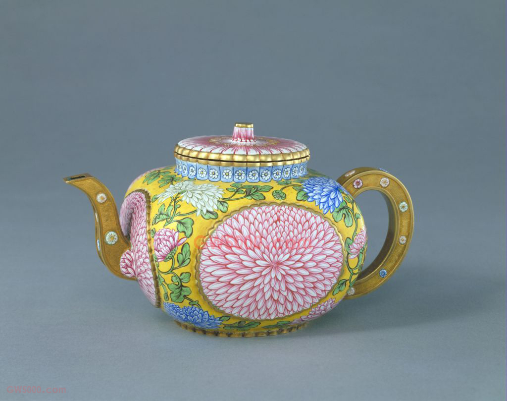 壶的造型设计、花纹图案全部取自菊花,是将菊花特点用到极致的作品,