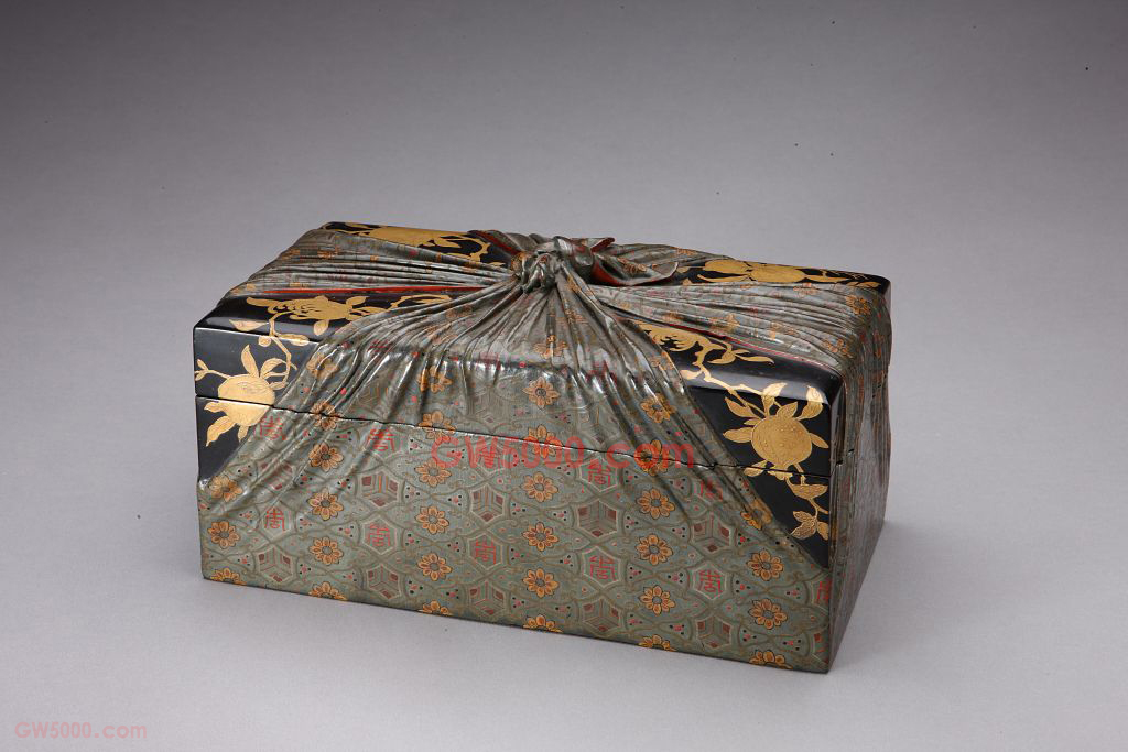 描金彩漆包袱式纹长方形盒,清雍正,高12.1厘米,长22厘米,宽11.5厘米。清宫旧藏。