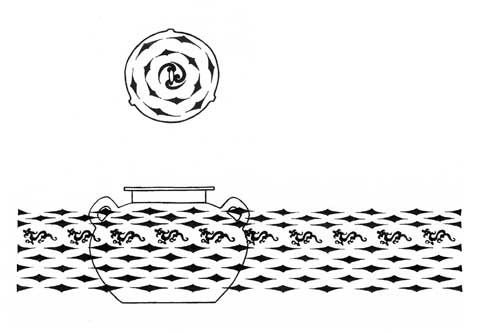 陶瓷器装饰纹样之一种。明、清两代是陶瓷器以龙纹为装饰的全盛时期,主要采用釉上、釉下彩绘方法,亦有印花、刻划等工艺。龙的体态有较多变化,常见有云龙、戏珠龙、海水龙、螭龙、行龙、立龙、正面龙、侧面龙、夔龙等。瓿(音布),同缶,盛酒器,流行于春秋战国时期。青铜瓿的祖形为陶缶,《说文》:“缶,瓦器,所以盛酒浆,秦人鼓之以节歌,象形。”