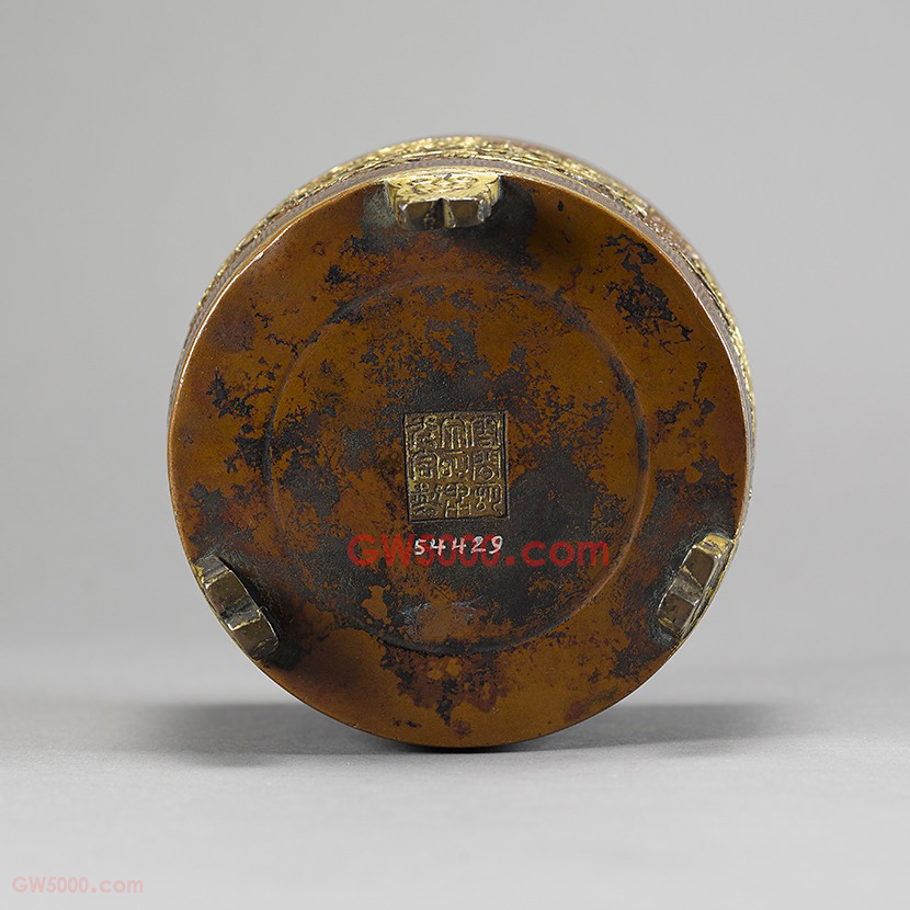 炉底落款“云间胡文明男光含制”。“云间”为松江府的别称,今属上海。胡文明为云间人,是活跃于明万历年间的铜器制作名家,其所制铜炉时人称为“胡炉”。“光含”为胡文明之子,《云间杂志》称“郡西有胡文明者, 按古式制彝、鼎、尊、卣之类,极精,价亦甚高,誓不传他姓”。故此器应为胡文明与其子胡光含合作完成之作品。
