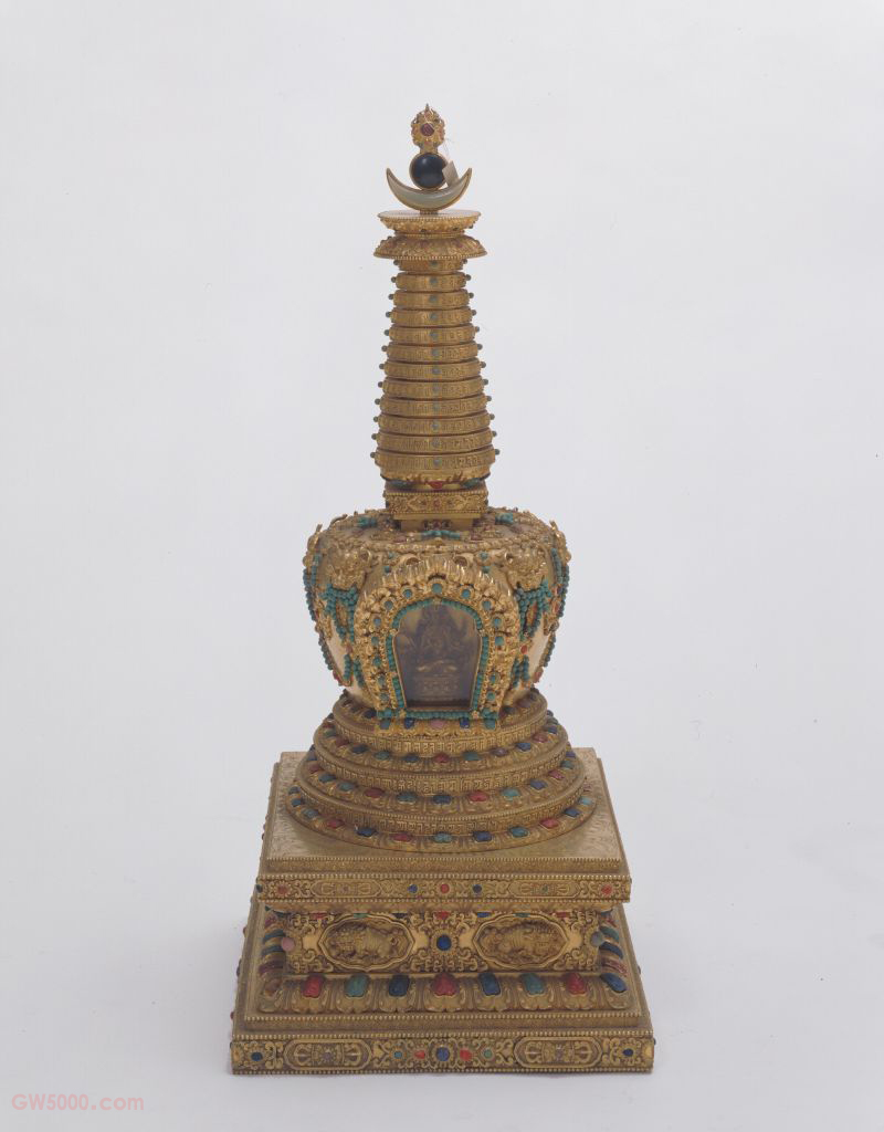 金嵌玉石佛塔,清,通高82厘米,底径36×36厘米。