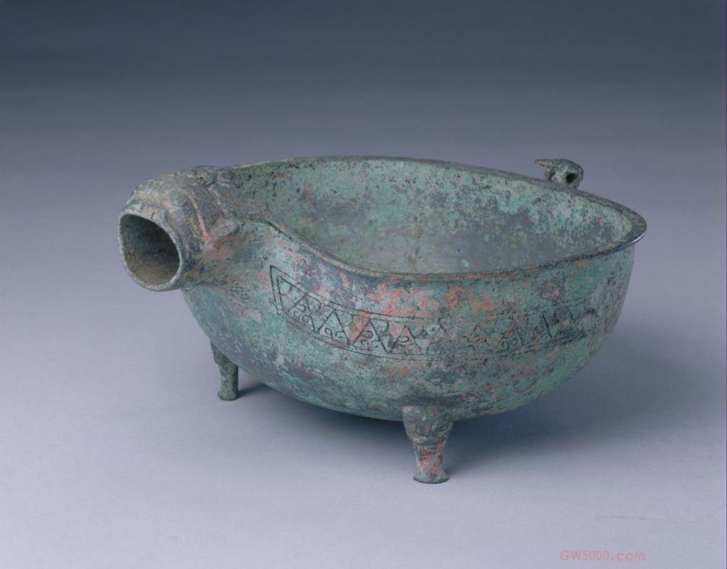 蛙纹匜,战国前期,高11.5厘米,宽22.4厘米,重0.68kg。
