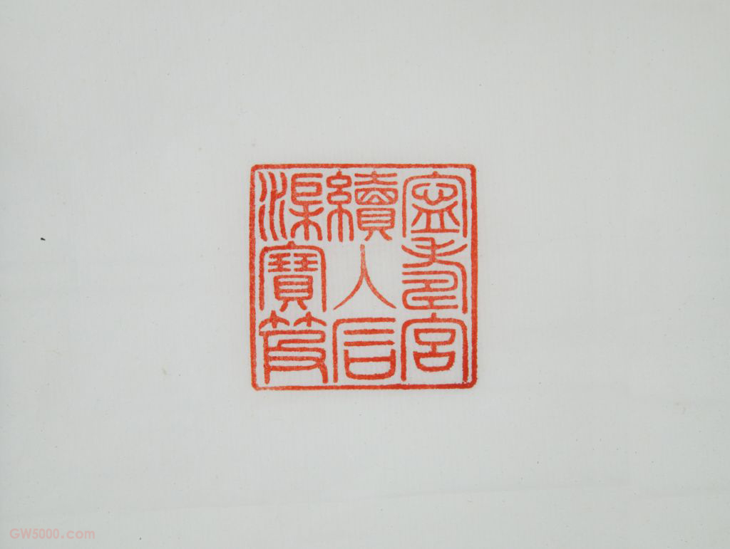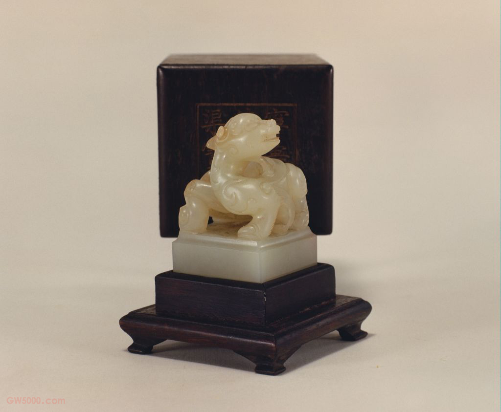 “宁寿宫续入石渠宝笈”印,清乾隆,白玉质,螭纽方形玺,汉文篆书。面3.4厘米见方,高6.1厘米,纽高3.7厘米。 该玺置于紫檀木宝匣内,为《石渠宝笈》续编著录之部分书画作品上所钤盖的八玺之一,刻制于乾隆五十六年(1791)正月至乾隆五十八年(1793)五月《石渠宝笈》续编编纂期间。《石渠宝笈》续编“凡例”规定,凡收入《石渠宝笈》续编的古今臣工书画,除照例钤盖“乾隆御览之宝”、“乾隆鉴赏”、“三希堂精鉴玺”、“宜子孙”、“秘殿珠林”或“石渠宝笈”、“秘殿新编”或“珠林重定”、“石渠宝鉴”或“宝笈重编”各玺外,其分贮乾清宫、养心殿、重华宫、御书房、宁寿宫五处的书画作品,还要分别加盖五处的鉴藏宝。因此,凡宁寿宫所藏被收入《石渠宝笈》续编者,都加盖此方 “宁寿宫续入石渠宝笈”玺,是鉴别清宫书画收藏的重要标志。 清乾隆、嘉庆间宫廷书画著录书,共有三编,初编成书于乾隆十年(1745年),共四十四卷;续编成书于乾隆五十八年(1793年),共四十卷;三编成书于嘉庆二十一年(1816年),共二十八函,一百二十册。书中收录了清朝宫廷所藏五帝御笔、历朝书画、本朝书画以及少量的碑帖和织绣作品近万件。 西汉高祖四年(前200年),萧何在未央宫正殿北(今西安市未央区柯家寨村西)建造国家藏书机构,以收藏入关所得秦之律令、图籍。其下砌石为渠以导水,因称“石渠阁”。宣帝甘露三年(前51年),诏太子太傅萧望之,诸儒韦玄成、施雠、梁丘临、戴圣、刘向等,于阁内讲五经异同,增立博士。至成帝时藏秘书于此。此后,“石渠”便成为皇家收藏图书典籍之所的专称。紫檀木是世界上最名贵的木材之一,主要产于南北回归线之间的热带、亚热带地区,我国广东、云南等地有少量出产。其木质坚硬,体重,入水即沉,没有疤痕,呈紫黑色。紫檀木生长缓慢,非数百年不能成材,故极珍贵。紫檀木的纹理纤细浮动,变化无穷,其色调深沉,显得稳重、大方、美观。《博物要览》称:“新者色红,旧者色紫,有蟹爪纹,新者以水浸之,可染物。”我国古代使用紫檀木制作器物历史悠久,东汉末年已见于记载,唐代宫廷中亦有使用紫檀木的记载。至明代,紫檀木更是受到皇家的宠爱。清代,紫檀木大量进入宫廷中,为内务府造办处用于制作清宫家具及文玩之器的必备材料,同时一些富商大贾之家也多使用名贵的紫檀木制造家具及生活用品。 位于紫禁城西六宫之一养心殿内西暖阁,原为乾隆皇帝的书房,名温室。因内府收藏王羲之《快雪时晴帖》、王献之《中秋帖》、王珣《伯远帖》,乾隆皇帝视为稀世之宝,贮藏于此,并撰《三希堂记》,阐释“三希“之深意,遂易名为三希堂。至今仍保持原貌。<br /> 清乾隆内府曾收藏晋王羲之《快雪时晴帖》、王献之《中秋帖》、王珣《伯远帖》三件晋人书迹,高宗弘历视之为稀世珍宝,贮藏于养心殿西暖阁“温室”,颜曰“三希堂”。