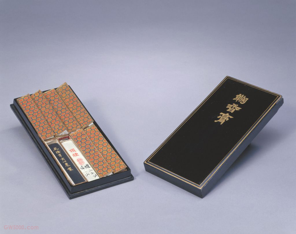汪心农菊香膏墨,高9厘米,宽1.5厘米,厚0.8厘米。 墨长方形,顶端弧圆。一面阴文填蓝楷书“菊香膏”三字,上方嵌米珠一粒;另一面阴文填蓝楷书“乾隆辛亥心农制”七字款。 此墨是汪心农套墨之一,共8锭,同装一黑漆长方匣内。 菊香膏墨的制作,据《窳叟墨录》中记载:“汪心农榖,得明季阿胶一大匣,嗅之有菊花香,遂自制墨。”用上述菊花香的阿胶所制成之墨,就是菊香膏墨。到嘉庆中期,菊香膏胶料已尽,菊香膏墨也就无人制了。 汪心农(1754-1821年),名榖,字琴田,号心农,安徽休宁人,工兰竹,富收藏,善鉴赏。曾为当时许多名人制墨,名极一时。其得意之作就有菊香膏、白凤膏、知其白等墨。菊香膏、白凤膏墨,系以松烟加入麝香制成,墨质精良,一点如漆。 篆刻的一种方式,即把印文镌成凹状,在纸上钤盖时印文是白色,因而又称为白文。