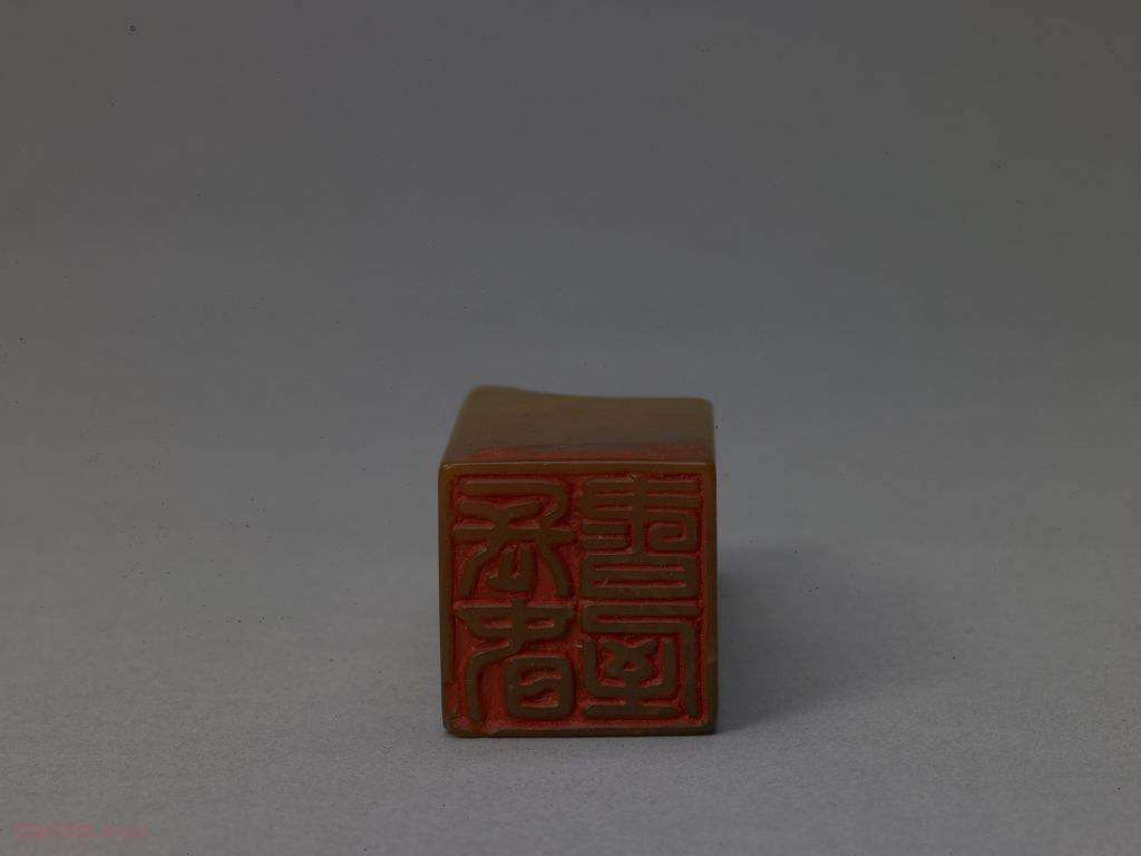 “长春书屋”印,清乾隆,田黄石质,光素方形玺,篆书。面2.5厘米见方,通高8.3厘米。 此玺为乾隆帝的闲章。乾隆帝为皇子时,雍正帝赏赐其长春仙馆,并赐号长春居士,故以后所御书屋,多以长春命名。以“长春书屋”命名的书屋在圆明园、宫内和避暑山庄都有,是乾隆帝重要的文事活动场所。 “长春书屋”是乾隆皇帝的私人书房。乾隆皇帝弘历为皇子时,雍正帝曾在圆明园九州清晏别室召开法会,赐号弘历“长春居士”,故以后乾隆皇帝的御用书屋,多以“长春”命名。据《造办处各作成做活计清档》记载,乾隆元年(1736年),登基不久的弘历下旨改造即将入住的养心殿,将勤政亲贤殿后的仙楼改造为书房,并御题“长春书屋”匾。此外,以“长春书屋”命名的御用书房在重华宫翠云馆、清漪园、圆明园九州清晏、西苑绮思楼、避暑山庄都有,是乾隆皇帝重要的文事活动场所。乾隆四十一年(1776年),为弘历归政而修建的养性殿,也完全按照养心殿长春书屋建了养性殿长春书屋。田黄石产于我国福建省福州市北寿山乡水田之下。石大者如卵,呈自然形态,色黄者称之为田黄,有黄金黄、桔皮黄、枇杷黄等多种。清初以来,取以治印,因其难得,遂成为印材中的珍品,故有“一两田黄一两金”之说。镌刻诗词成语的印章,一般钤盖在书页上。为区别于公章与名章,故称为闲章。 圆明园位于北京市海淀区东部,占地约350万平方米,由圆明、长春、万春三园组成。始建于康熙四十八年(1709年),雍正、乾隆年间陆续扩建,至乾隆三十五年(1770年)基本建成。嘉庆、道光、咸丰时有所增建,前后历时150余年,终于建成了一个包括140余所宫殿楼阁、100多处秀丽景致的宏伟的皇家园林。咸丰十年(1860年)第二次鸦片战争中被英法联军焚毁。又称“承德离宫”、“热河行宫”,是清代著名的皇家园林,位于今河北省承德市。始建于清代康熙四十二年(1703年),五十年正式命名为避暑山庄。乾隆朝曾进行过大规模的扩建,是我国现存规模最大的清代皇家园林。康熙皇帝玄烨和乾隆皇帝弘历,每年夏、秋季至此居住,处理政务等,使之成为都城北京以外的又一个政治活动中心。