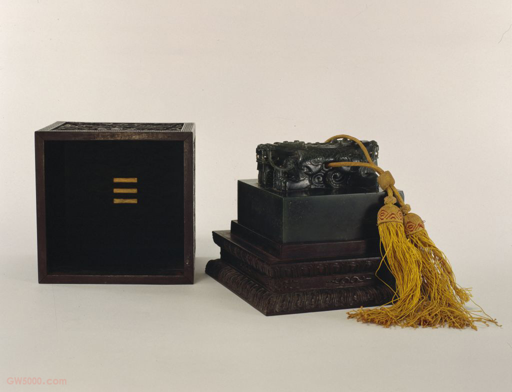 “戒得堂宝”,清乾隆,碧玉质,交龙纽方形玺,汉文篆书。面11.5厘米见方,通高8.6厘米,纽高4.1厘米。附系黄色绶带,配紫檀木浮雕海水云龙纹宝匣。 戒得堂位于避暑山庄清舒山馆之左,命名于乾隆四十五年(1780),则知此宝制作于是年或稍后,专门存放在此书堂内。关于戒得堂命名之始末,乾隆帝曾有《戒得堂记》云:“我皇祖圣寿望七时,尝欲镌通用小玺,命内廷翰林拟文,皆无当圣意者,乃定‘戒之在得’字用之。……然当时圣意引而未发。予今亦届七秩,于元旦试笔,即隐括此语为什。兹驻跸避暑山庄,乃皇祖朝乾夕惕用此玺之处,而予受恩之所也。适作书堂于清舒山馆之左,即以此题额而为记,以阐皇祖之意。曰:帝王之学,与佔毕书生有不同,则所戒亦当各异。未定方刚之戒,兹不复论,兹所戒者,当在得矣。”可知此堂之命名,既有仰体康熙“戒之在得”之训的意思,也包含乾隆自我鞭策、自我警励的成分。 碧玉是新疆和阗软玉中的一个品种,软玉主要有白玉、青玉、碧玉、墨玉、黄玉等品种。其中碧玉色如菠菜叶,略有透明感,呈油脂或蜡状光泽。由于所含成分不同,颜色和结构均不如其它软玉均一,色彩淡的呈菜色,色彩深的呈墨绿色,还有斑杂的大环斑状。 帝后宝印的纽制之一。其纽形为两条相向的龙躯体合二为一。 紫檀木是世界上最名贵的木材之一,主要产于南北回归线之间的热带、亚热带地区,我国广东、云南等地有少量出产。其木质坚硬,体重,入水即沉,没有疤痕,呈紫黑色。紫檀木生长缓慢,非数百年不能成材,故极珍贵。紫檀木的纹理纤细浮动,变化无穷,其色调深沉,显得稳重、大方、美观。《博物要览》称:“新者色红,旧者色紫,有蟹爪纹,新者以水浸之,可染物。”我国古代使用紫檀木制作器物历史悠久,东汉末年已见于记载,唐代宫廷中亦有使用紫檀木的记载。至明代,紫檀木更是受到皇家的宠爱。清代,紫檀木大量进入宫廷中,为内务府造办处用于制作清宫家具及文玩之器的必备材料,同时一些富商大贾之家也多使用名贵的紫檀木制造家具及生活用品。 在平面上雕出凸起的纹饰或物象的一种雕塑。按凸起高度的不同,可分为高浮雕、深浮雕、浅浮雕等,也有几种雕刻技法结合使用的形式,多见于高精繁杂的雕刻作品。 陶瓷器装饰纹样之一种。明、清两代是陶瓷器以龙纹为装饰的全盛时期,主要采用釉上、釉下彩绘方法,亦有印花、刻划等工艺。龙的体态有较多变化,常见有云龙、戏珠龙、海水龙、螭龙、行龙、立龙、正面龙、侧面龙、夔龙等。又称“承德离宫”、“热河行宫”,是清代著名的皇家园林,位于今河北省承德市。始建于清代康熙四十二年(1703年),五十年正式命名为避暑山庄。乾隆朝曾进行过大规模的扩建,是我国现存规模最大的清代皇家园林。康熙皇帝玄烨和乾隆皇帝弘历,每年夏、秋季至此居住,处理政务等,使之成为都城北京以外的又一个政治活动中心。 孔子三戒之论,朱子注谓:以理胜之,则不为血气所使。又引范氏之言,以为养其志气,故不为血气所动。蒙引又引新安陈栎之语,以为志亦定向于理,志有善恶,理无不善。诸说绎圣析理,各抒所见,亦既择之精而语之详矣。 我皇祖圣寿望七时,尝欲镌通用小玺,命内廷翰臣拟文,皆无当圣意者。乃定“戒之在得”字用之。此语闻之张照,盖尔时伊在南书房里行也。然当时圣意引而未发。予今年亦届七袠,于元旦试笔,既隐括此语为什。兹驻跸避暑山庄,乃皇祖朝乾夕惕用此玺之处,而予受恩之所也。适作书堂于清舒山馆之左,即以此题额而为记,以阐皇祖之义。 曰帝王之学与占毕书生有不同,则所戒亦当各异。未定方刚之戒,兹不复论。兹所戒者,当在得矣。而得岂与庶人同乎?欲得贤材而用之,此可戒乎?欲得亿万年永承天眷,此可戒乎?欲得寰宇安宁,万姓乐业,此可戒乎?欲得五风十雨,屡绥普遍,此可戒乎?若夫欲得货财为琼林,大盈金花内帑之私,则是剜肉补创,自速其亡之举,古有明戒,而戒及此,其亦小矣。 因敬思皇祖所云戒得者,其在扩土兼远之为乎?扩土兼远之不已,必有穷兵黩武之事。我皇祖虽征朔漠,复卫藏,非穷兵也,不得已也。予小子钦承先志,亦既平伊犁,定回部,靖金川,扩土不为不遐,兼远不为不备,然非敢恃兵之强、将之略而穷黩,以逞己之欲,亦惟是不得已而用之耳。 幸蒙天助,诸事顺成,今则寿登七旬,亦既老矣,尚何所不足,敢弗以皇祖之戒为戒乎。如是,则先儒所谓志气血气,胥不外一理,然此理实非占毕儒生所得同,而或有合于我仁祖垂示万祀之义乎!广义即为宫廷。紫禁城范围内可统称内廷或大内。狭义讲即为宫廷后部帝后生活区。 农历正月初一,即春节。 帝王出行中途停留暂住。