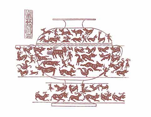 春秋战国时期,青铜器纹饰出现了以表现当时社会生活为内容的宴乐、弋射、采桑、狩猎以及水陆攻战等题材,这时期的礼器如壶、豆等,生活用品如铜镜等,都有以此类纹饰作为装饰者,这是纹饰艺术发展到一定阶段的产物,也是后来绘画艺术的先声。
