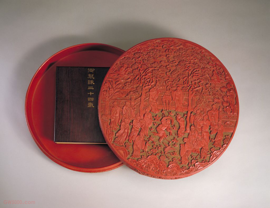 雕漆品种之一,又名“雕红漆”或“红雕漆”。此技法成熟于宋元时期,发展于明清两代。明黄成《髹饰录·坤集·雕镂第十·剔红》中写道:“剔红,即雕红漆也。……宋元之制,藏锋清楚,隐起圆滑,纤细精致。”其法常以木灰、金属为胎,在胎骨上层层髹红漆,少则八九十层,多达一二百层,至相当的厚度,待半干时描上画稿,然后再雕刻花纹。一般以锦纹为地,花纹隐起,华美富丽。根据漆色的不同,有剔红、剔黄、剔绿、剔黑、剔彩、剔犀之分,其中以剔红器最多见。此题材一般有两种处理手法,一是由传说中的仙人组成,常见的有八仙、西王母、寿星等;一是由各种花卉、竹、桃、灵芝、水仙等组成图案,寓意群仙祝寿。