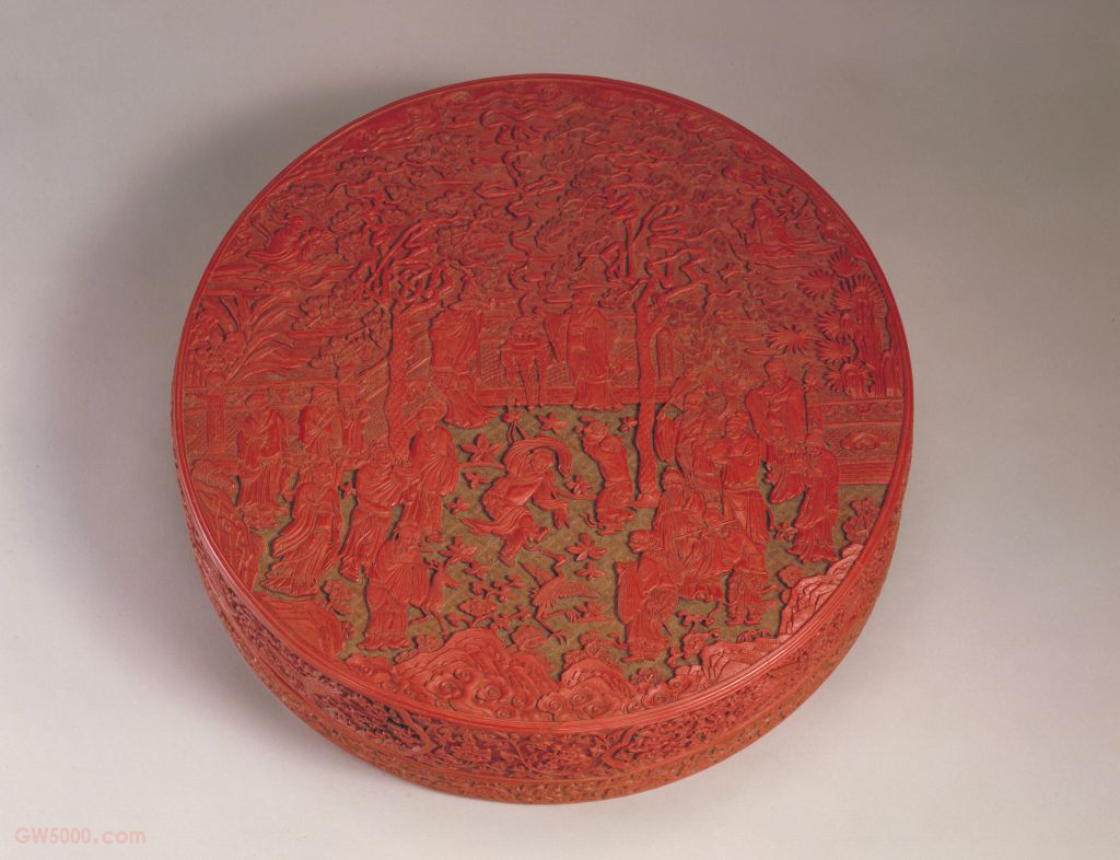 此器纹饰较繁,雕工细腻,尤其是人物的刻划极工,为嘉靖剔红漆器之精品。