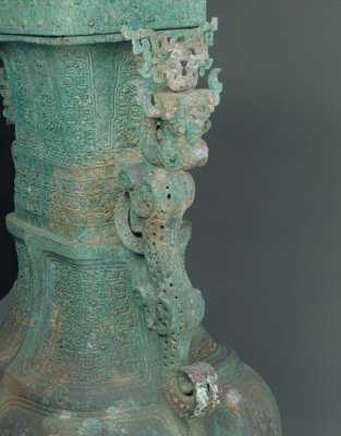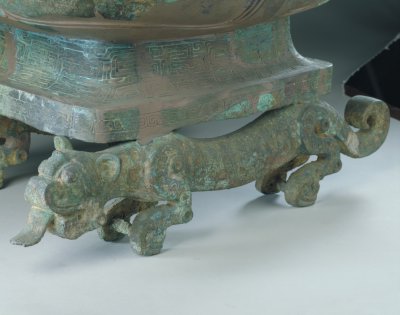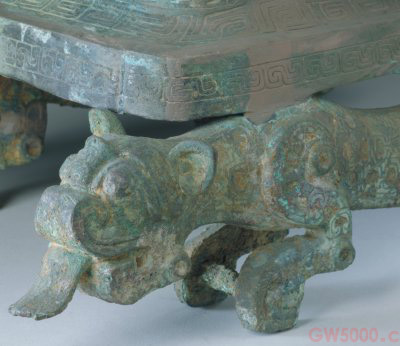 兽耳虎足方壶,春秋后期,通高87.5厘米,宽47.2厘米,重41kg。