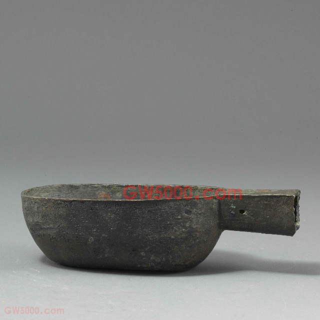 椭升和方升一样为秦时期测量容积的器具,为传世之器。呈椭圆形,直口收腹,平底,一端设有上平下圆的筒装柄。外壁刻秦始皇廿六年(前221)诏书和秦二世诏书。