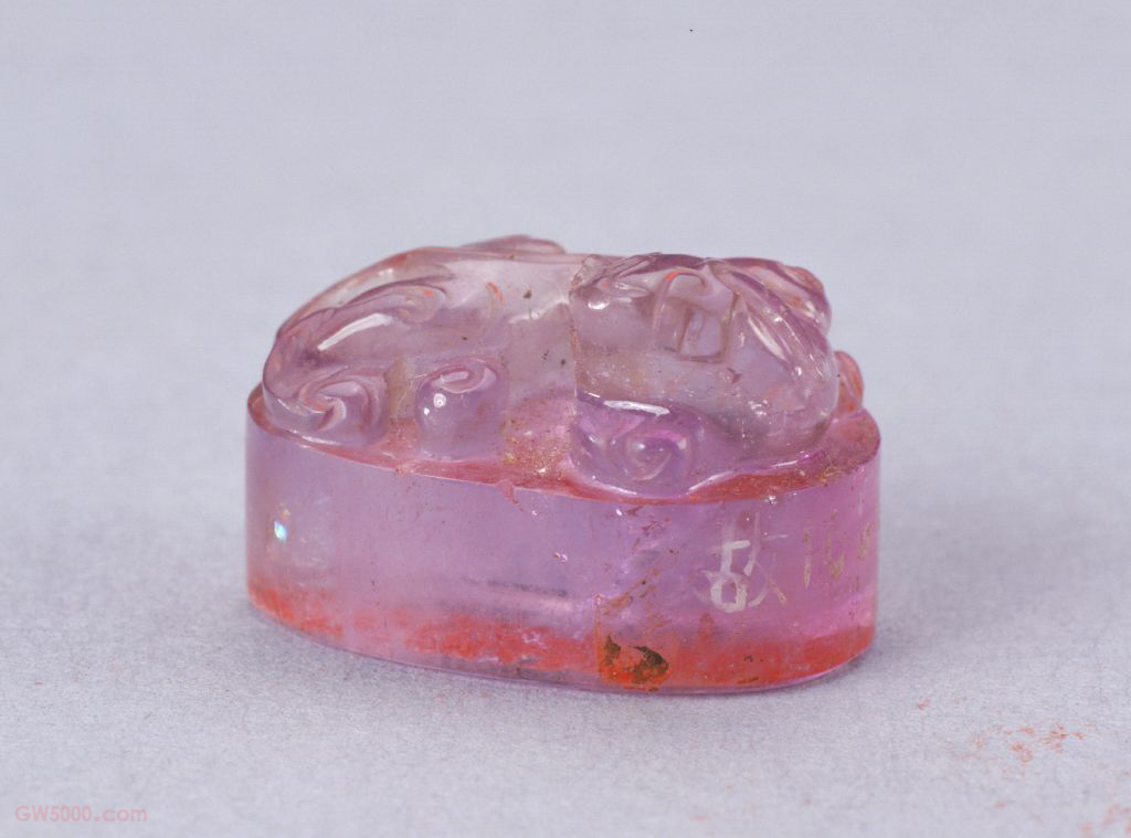 “乐善堂”印,清雍正(乾隆为宝亲王时期),紫晶质,螭纽椭圆形玺。篆书。短径1.6厘米,长径2.3厘米,通高1.5厘米,纽高0.8厘米。