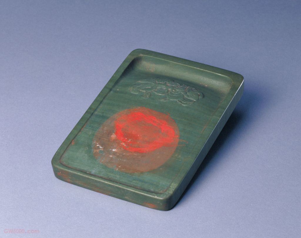 雍正款松花江石砚,清雍正,长12.5厘米,宽8.4厘米,厚1.2厘米。清宫旧藏。