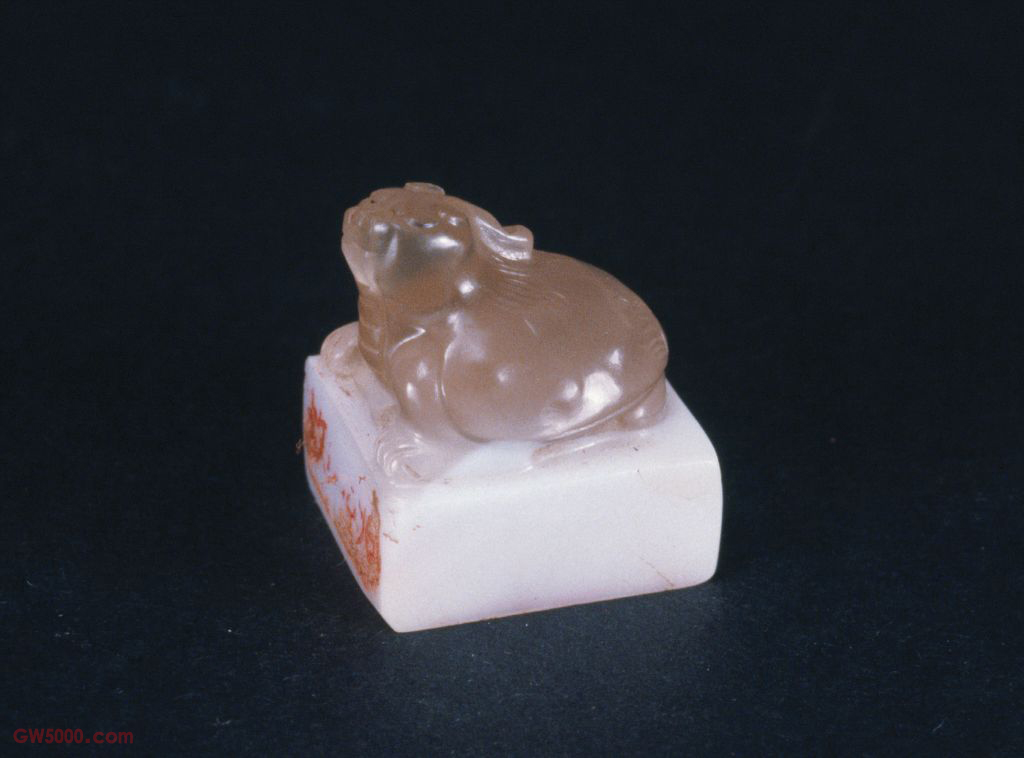 “齐物”印,清雍正(乾隆为宝亲王时期),玛瑙质,异兽形长方形玺。篆书。面宽1.4厘米,长1.7厘米,通高2厘米,纽高1.2厘米。爵位名。其名始于南朝末期。隋代以皇帝的伯叔兄弟和皇子为亲王,唐代以皇帝的兄弟和皇子为亲王,宋明各代一般因袭不改。清代宗室封爵的第一级称为和硕亲王,主要用以封皇子,蒙古贵族亦有封亲王者。