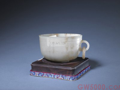 白玉活环柄杯