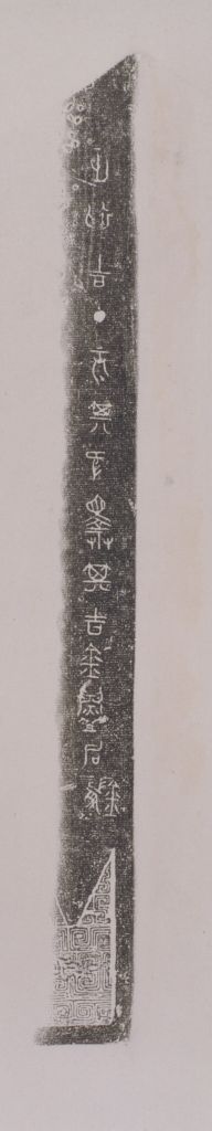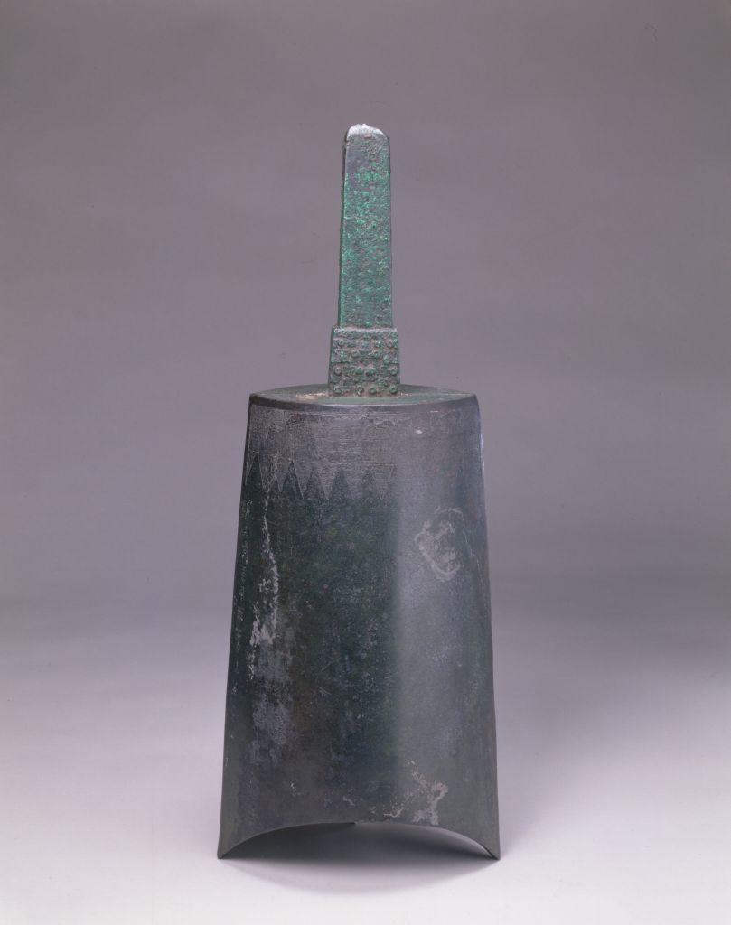 此器为浙江武康山出土,同出7枚,其中两件有铭文。一种手持的青铜打击乐器。春秋晚期至战国时流行于吴越地区。使用时一手持柄,口朝上,另一手持槌敲打其腔体,通常在祭祀和宴享时奏击。家具上常用的纹饰之一,由陶器和青铜器上的雷纹衍化而来,寓意吉利深长,苏州民间称之为“富贵不断头”。在家具上,回纹主要作为边饰,用于边框、牙条、足端或束腰等处。家具上大量采用回纹见于清代。装饰纹样的一种。一端尖锐,一端较宽,作蕉叶的形式。蕉是“芭蕉”的略称,蕉叶即芭蕉叶。