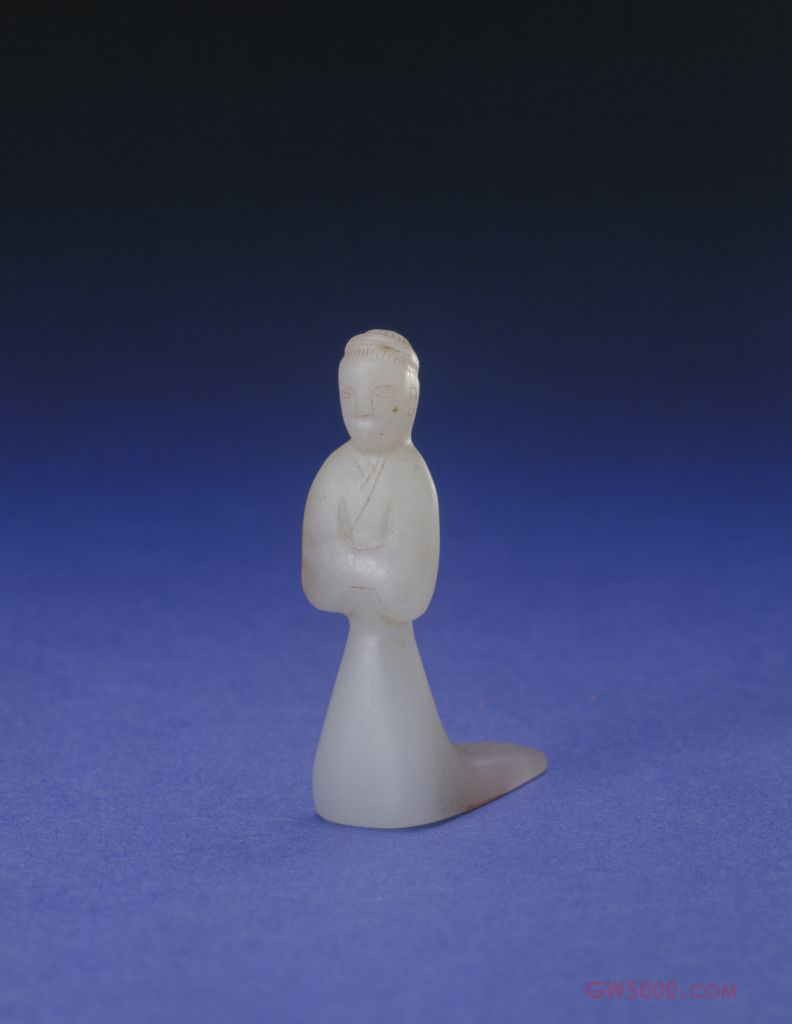 白玉人,汉,通高4.8厘米,宽1.3厘米。