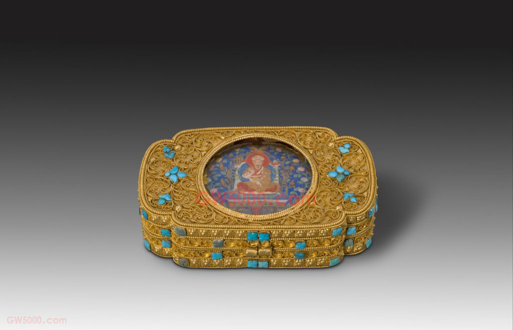 金累丝嵌乾隆佛装像佛窝,清,高2厘米,长7.8厘米,宽4.8厘米。 我国古代金工传统工艺之一,又名“花作”或“花纹”,为金属工艺中最精巧者。它是将金银拉成丝,然后将其编成辫股或各种网状组织,再焊接于器物之上,谓之累丝。立体的累丝作品制作最难,须事先经“堆灰”的手续。所谓“堆灰”,即把炭研成细末,用白芨草泡制的粘液调和作为塑料,塑成人物或走兽等所要制作的物象,然后再在上面进行累丝,用焊药焊连,之后置于火中把里面的炭模烧毁,即成立体中空剔透玲珑的精美艺术品。
