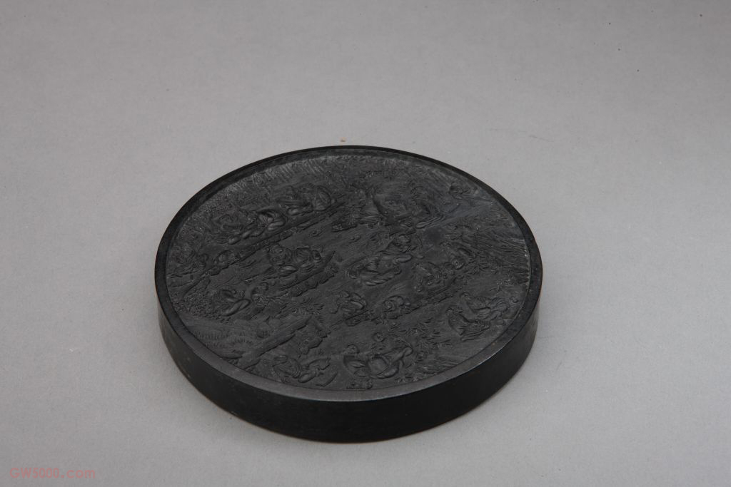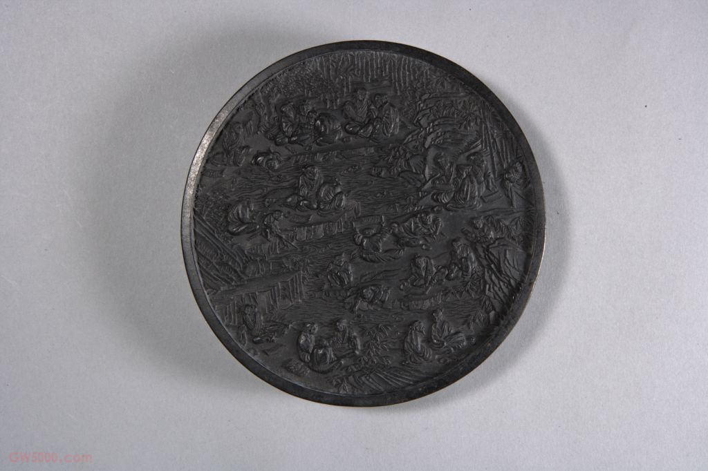 叶玄卿世藏真赏定武兰亭圆墨,清康熙,直径12.5厘米,厚1.7厘米。 墨圆形,正面为“兰亭修禊”图。背面为楷书阳文《定武兰亭》序文:“永和九年……”。序文末尾有楷书“叶玄卿世藏真赏”七字。所谓兰亭“定武本”,是唐太宗在得到王羲之《兰亭序》真迹后,由书法家欧阳询摹本拓刻于学士院,五代梁时移置汴都。辽太宗耶律德光破后晋后,携此石刻北去,因中途病故,石刻被弃于途。后于北宋庆历年间发现,置于定州州治。至大观年间被置于宋宫宣和殿。金灭北宋时石刻散失不传。定州在北宋时属定武军,故此石刻拓本称为“定武兰亭”。叶玄卿,明万历时期徽州墨家,休宁人,别号如道人、玄玄子,斋号“苍苍室”。其人在明代制墨界的地位与程君房、方于鲁等人相当,但至今墨品流传较少。子孙继承其业,仍以“叶玄卿”为名,一直活跃到康熙时期,由于避讳的原因,“叶玄卿”改为“叶元卿”。篆刻的一种方式,即把印文镌成凸状,在纸上钤盖时印文是红色,因而又称为朱文。 唐太宗得王羲之《兰亭序》真迹后,有欧阳询摹本拓刻于学士院,五代梁时移置汴都。辽耶律德光破后晋携此石刻北去,中途病故,石被弃。宋庆历年间发现,置于定州州治,大观年间置于宣和殿。金兵灭北宋入汴京,石散失不传。定州宋时属定武军,故此石刻拓本称为“定武兰亭”。 即李世民,唐朝第二代君主, 627至649年在位,在位期间国力强盛。 王羲之(303—361年),东晋书法家,字逸少,琅琊临沂(今山东临沂)人,居会稽山阴(今浙江绍兴)。出身名门,官至右军将军、会稽内史,故又称“王右军”。他早年以卫夫人(铄)为师,草书学张芝,正书则取法钟繇,又博览秦汉篆隶碑刻名迹,自出机杼,创出妍美流变的书体,取代了以往古拙质朴的书风,自成一家。评者谓其草书浓纤折衷,真书势巧形密,行书遒媚劲健,千变万化,而体势自然。对我国书法艺术的发展具有继往开来的巨大贡献,对日本书法界也有深刻影响.有“书圣”之誉。所书《兰亭序》尤脍炙人口,被称为天下第一行书。传世唐代摹本有《兰亭序》《快雪时晴帖》《丧乱帖》《寒切帖》《平安何如奉橘》三帖、《上虞帖》等,刻本有《乐毅论》《十七帖》以及唐僧怀仁集王书的《圣教序》等。 东晋永和九年(353年)春三月三日,王羲之、谢安、孙绰等41人,集会于会稽(今浙江绍兴)山阴兰亭,修祓禊之礼。王羲之用蚕茧纸、鼠须笔书《兰亭序》,凡二十八行三百二十四字,书法遒媚劲健,精美绝伦,为历代楷模。<br /> 欧阳询(557—641年),字信本,潭州临湘(今湖南长沙)人。他经历陈、隋、唐三朝,贞观间官至太子率更令、弘文馆学士,封渤海县男。欧阳询博览古今,书则八体尽能,尤工正、行二体,学王羲之、王献之,吸收汉隶和魏晋以来楷法,笔力险劲刻厉,意态精密俊逸,法度森严,世称“欧体”,于后世影响深远。他与虞世南、褚遂良、薛稷并称为“初唐四家”。唐人张怀瓘评之曰:“真行之书出于大令,别成一体,森森焉若武库矛戟,风神严于智永,润色寡于虞世南。”(《书断》)有《虞恭公碑》、《化度寺邕禅师塔铭》、《九成宫醴泉铭》、《皇甫诞碑》诸名碑传世。 辽太宗耶律德光(902—947年),汉名德光,契丹名尧骨。太祖次子,母淳钦皇后萧氏。他性宽仁而貌严厉,雄杰有大志,精于骑射。天赞元年(922年),任天下兵马大元帅,随太祖东征西伐,屡建战功。926年太祖死,次年即位。在位期间,领兵南攻后唐,扩建皇都,定官制,采取以国制待契丹、以汉制待汉人的政策,并连年攻打后晋,最终于大同元年(947年)进驻晋都汴梁,改国号为大辽。时年病死,庙号太宗。耶律德光(902-947年),原名耀屈之,字德谨,小字尧骨。辽太祖次子,辽第二代皇帝。太祖时为天下兵马大元帅,随太祖东征西战,屡立战功。太祖死后,在母亲应天后支持下称帝。即位后不断进攻中原地区。大同元年(947年)攻克后晋都城,改国号为辽,使辽国领土迅速扩大,同年死于南征途中。方于鲁(1541-1608),初名大滶,字建元,徽州歙县人,明代万历年间著名制墨家。早年从程君房学制墨,得其制墨真谛,始于徽州独立经营墨业。曾以“于鲁”铭款墨,进献朝廷,博得皇帝赞赏,遂更“于鲁”为名。著有《方于鲁墨谱》(分列国宝、列国华、列博古、列博物、列法宝、列鸿宝六卷),取象立义,收录自制墨六品,计385式。 方氏制墨,多用油烟,配以各种名贵药料,墨质纯净,光洁细腻,被世人视为珍品。是我国历史上特有的制度和风俗,主要是封建时代对于君主和尊长的名字避免直接说或写出,而用缺笔、空缺之法或其它字来替代。
