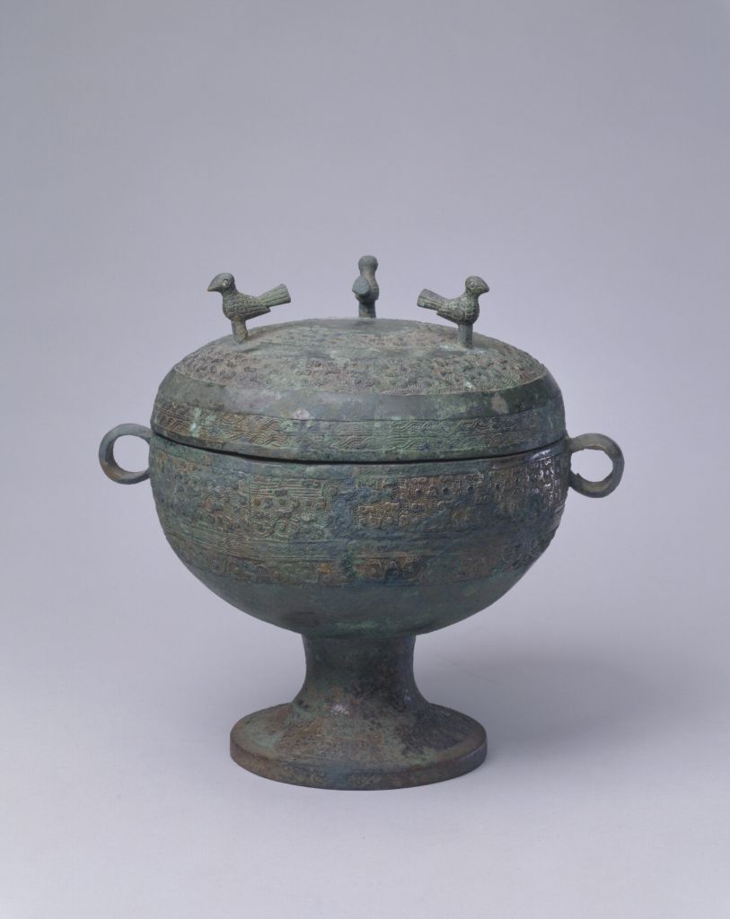 蟠虺纹三鸟盖豆,高21.5厘米,口径18.6厘米,重1.92kg。