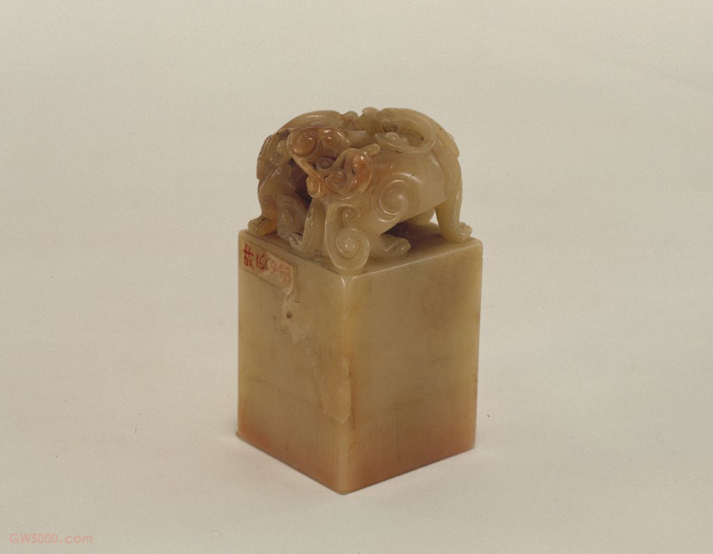 “圆明园”印,清雍正,寿山石质,双螭纽方形印,汉文篆书。面3.6厘米见方,通高7厘米,纽高2.5厘米。 圆明园位于北京西郊海淀,最初是康熙帝赐给皇四子胤禛的花园,后经过雍正、乾隆、嘉庆三朝近百年的经营,成为一座集宫廷建筑的雍容华贵和江南园林的委婉多姿于一体,多种形式、不同风格造园艺术有机融合的大型皇家园林,被誉为“一切造园艺术的典范”和“万园之园”。雍正、乾隆、嘉庆、道光、咸丰五朝皇帝,都曾长年居住在圆明园,并于此举行朝会,处理政事,与紫禁城同为当时的全国政治中心。咸丰十年(1860)被英法联军抢劫后焚毁。 雍正帝此玺所指圆明园专指康熙帝的赐园而言,并不包括后来并入的长春园和绮春园。圆明园位于北京市海淀区东部,占地约350万平方米,由圆明、长春、万春三园组成。始建于康熙四十八年(1709年),雍正、乾隆年间陆续扩建,至乾隆三十五年(1770年)基本建成。嘉庆、道光、咸丰时有所增建,前后历时150余年,终于建成了一个包括140余所宫殿楼阁、100多处秀丽景致的宏伟的皇家园林。咸丰十年(1860年)第二次鸦片战争中被英法联军焚毁。叶腊石之一种,产于福建福州市郊寿山,因名寿山石。质地细腻,色彩丰富,其中以各种透明或半透明的冻石品质为高。寿山石是雕刻和治印的优良材料。