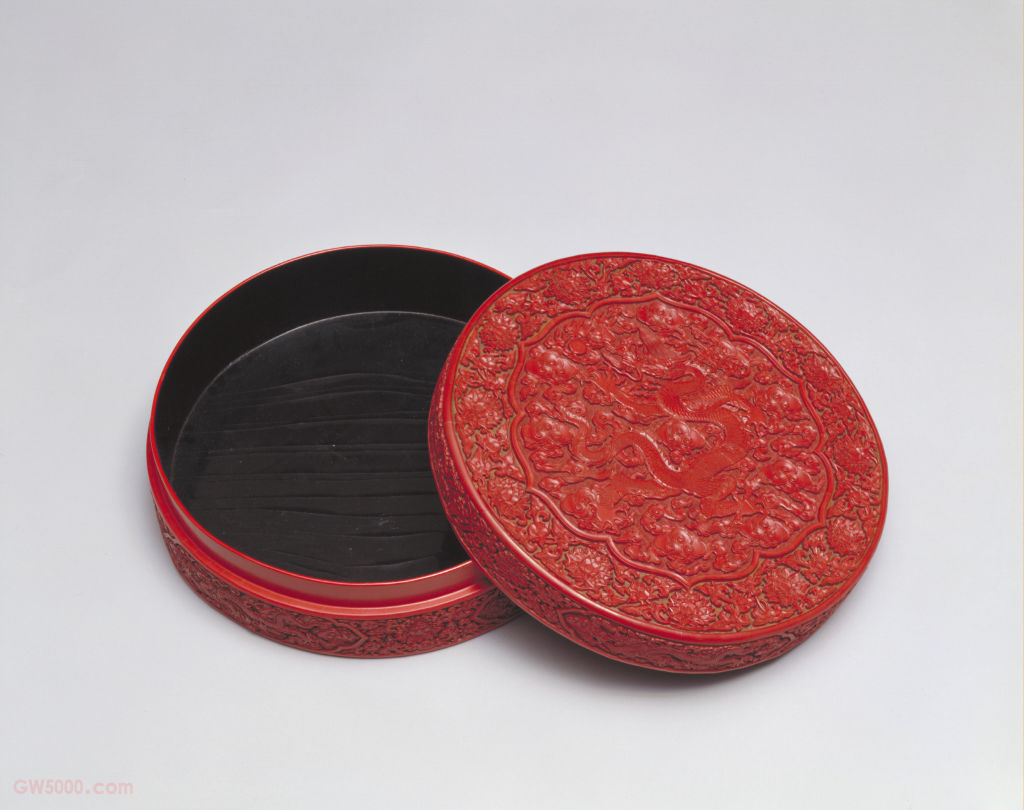 此盒胎体厚重,髹漆肥厚,漆色纯正,漆质细腻,雕刻圆润,运刀娴熟,磨制光滑,图纹紧凑,龙纹雕刻得雄健有力,诸方面均体现了宣德朝漆器的特点。