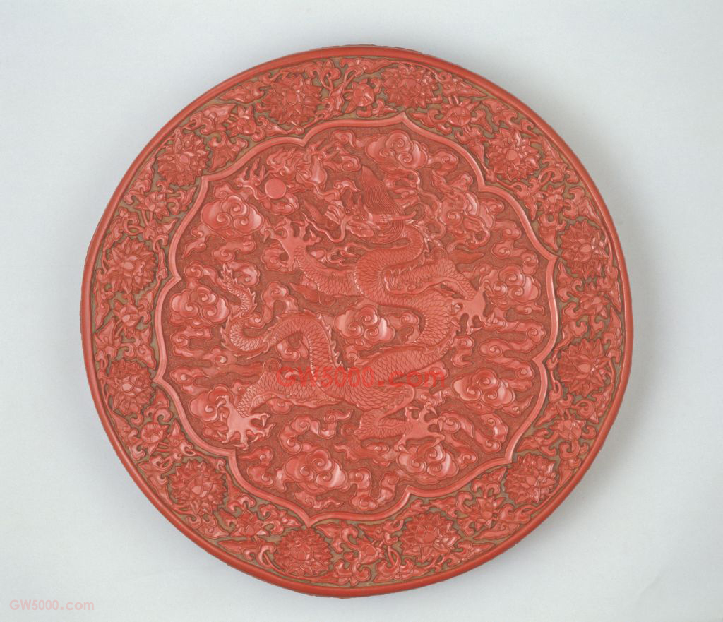 雕漆品种之一,又名“雕红漆”或“红雕漆”。此技法成熟于宋元时期,发展于明清两代。明黄成《髹饰录·坤集·雕镂第十·剔红》中写道:“剔红,即雕红漆也。……宋元之制,藏锋清楚,隐起圆滑,纤细精致。”其法常以木灰、金属为胎,在胎骨上层层髹红漆,少则八九十层,多达一二百层,至相当的厚度,待半干时描上画稿,然后再雕刻花纹。一般以锦纹为地,花纹隐起,华美富丽。根据漆色的不同,有剔红、剔黄、剔绿、剔黑、剔彩、剔犀之分,其中以剔红器最多见。陶瓷器装饰纹样之一种。明、清两代是陶瓷器以龙纹为装饰的全盛时期,主要采用釉上、釉下彩绘方法,亦有印花、刻划等工艺。龙的体态有较多变化,常见有云龙、戏珠龙、海水龙、螭龙、行龙、立龙、正面龙、侧面龙、夔龙等。明早期果园厂漆器的一种雕饰做法,常见于花卉题材的作品中。即以黄漆为底色,不刻锦纹,素地上压朱漆花纹,与山水人物题材的雕漆作品刻锦纹地的做法完全不同。这种黄漆素地的效果极佳,一方面可以突出表面的花纹,另一方面可以使漆地平滑整齐。