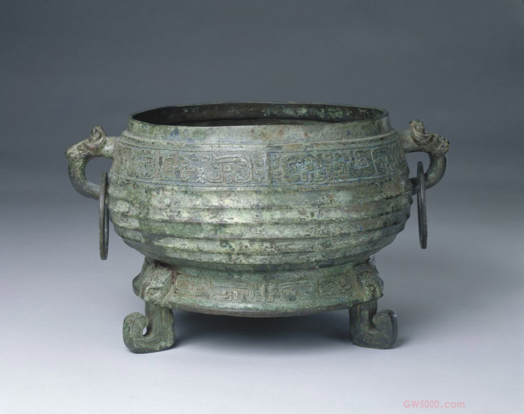 簋(音鬼),古代盛食物的器具,自商代开始出现,延续到战国时期。《周礼·地官·舍人》:“凡祭祀,共簠『0025』”。古籍中多写作簋,而铜器自铭则常为『0025』。青铜簋器物造型形式多样,变化复杂,有圆体、方体,也有上圆下方者。早期的青铜簋跟陶簋一样无耳,后来才出现双耳、三耳或四耳簋。据《礼记·玉藻》记载和考古发现而知,簋常以偶数出现,如四簋与五鼎相配,六簋与七鼎相配。《吕氏春秋·适威》:“周鼎有窃曲(一作穷曲),状甚长,上下皆曲,以见极之败也。”总的特点是长带形,两端钩曲,始见于西周晚期。