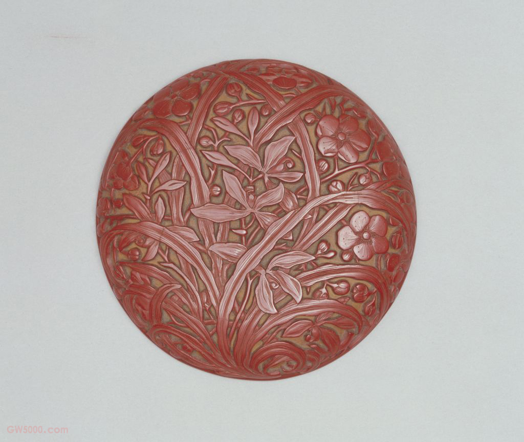梅、兰、竹、菊被喻为花中四君子,文人常以此来表现高洁的品质和情怀,因而也成为工艺品中常用的装饰题材。雕漆品种之一,又名“雕红漆”或“红雕漆”。此技法成熟于宋元时期,发展于明清两代。明黄成《髹饰录·坤集·雕镂第十·剔红》中写道:“剔红,即雕红漆也。……宋元之制,藏锋清楚,隐起圆滑,纤细精致。”其法常以木灰、金属为胎,在胎骨上层层髹红漆,少则八九十层,多达一二百层,至相当的厚度,待半干时描上画稿,然后再雕刻花纹。一般以锦纹为地,花纹隐起,华美富丽。根据漆色的不同,有剔红、剔黄、剔绿、剔黑、剔彩、剔犀之分,其中以剔红器最多见。为明代永乐、宣德时期果园厂所制雕漆的典型器形之一。此种形制的器物主要为圆形盒,盖面微微隆起,器壁下收,平底,有的底稍内凹。清初人高士奇在《金鳌退食笔记》中讲到明永乐年所制漆器型制时称:“……剔红盒有蔗段、蒸饼、河西、三撞、两撞等式。……”高氏所记与现存永乐漆器印证正相符合。明早期果园厂漆器的一种雕饰做法,常见于花卉题材的作品中。即以黄漆为底色,不刻锦纹,素地上压朱漆花纹,与山水人物题材的雕漆作品刻锦纹地的做法完全不同。这种黄漆素地的效果极佳,一方面可以突出表面的花纹,另一方面可以使漆地平滑整齐。 古建筑彩画绘画的一种题材。清代中期之前多画绿叶子花卉,清代晚期画黑叶子花卉。