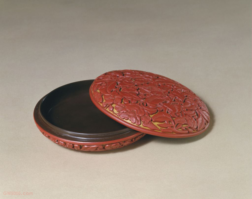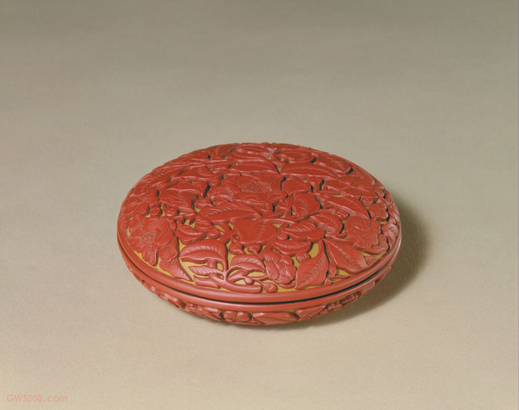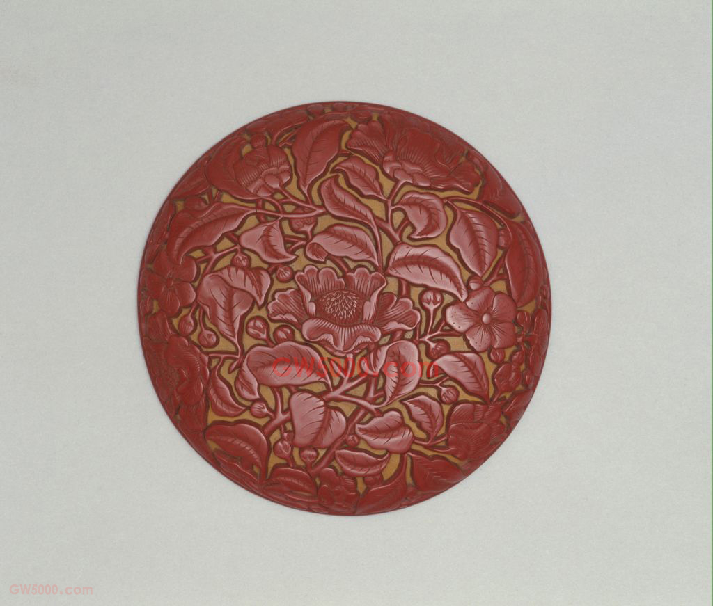 剔红茶花纹圆盒,明永乐,高4.4厘米,口径13厘米,足径9厘米。清宫旧藏。 盒蒸饼式,子母口,足底内凹。通体黄漆素地上雕折枝茶花,间有梅花数朵。外底髹赭色漆,左侧有刀刻填金“大明宣德年制”后刻款,款下有涂抹痕迹,原应为永乐款识。 永乐时期的官造雕漆器多数体量较大,此种小盒数量虽少却很精致。雕漆品种之一,又名“雕红漆”或“红雕漆”。此技法成熟于宋元时期,发展于明清两代。明黄成《髹饰录·坤集·雕镂第十·剔红》中写道:“剔红,即雕红漆也。……宋元之制,藏锋清楚,隐起圆滑,纤细精致。”其法常以木灰、金属为胎,在胎骨上层层髹红漆,少则八九十层,多达一二百层,至相当的厚度,待半干时描上画稿,然后再雕刻花纹。一般以锦纹为地,花纹隐起,华美富丽。根据漆色的不同,有剔红、剔黄、剔绿、剔黑、剔彩、剔犀之分,其中以剔红器最多见。为明代永乐、宣德时期果园厂所制雕漆的典型器形之一。此种形制的器物主要为圆形盒,盖面微微隆起,器壁下收,平底,有的底稍内凹。清初人高士奇在《金鳌退食笔记》中讲到明永乐年所制漆器型制时称:“……剔红盒有蔗段、蒸饼、河西、三撞、两撞等式。……”高氏所记与现存永乐漆器印证正相符合。明早期果园厂漆器的一种雕饰做法,常见于花卉题材的作品中。即以黄漆为底色,不刻锦纹,素地上压朱漆花纹,与山水人物题材的雕漆作品刻锦纹地的做法完全不同。这种黄漆素地的效果极佳,一方面可以突出表面的花纹,另一方面可以使漆地平滑整齐。 花卉画的一种。画花卉不写全株,只画从树干上折下来的部分花枝,故名。有折枝梅、折枝莲、折枝牡丹、折枝果实等。 髹漆工艺之一,亦称刻漆。其工艺技法是在胎体上层层髹漆,少则几十层,多则百层以上,然后在漆上雕刻花纹。其胎以木质居多,漆色有红、黄、绿、酱等。<br>