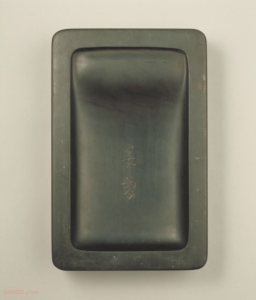 饕餮乃古代传说中贪食之兽,多饰于古青铜器和玉器上,此处刻“墨餮”系赞砚之嗜墨。此砚色深沉,质润泽,形制厚重而圆融。