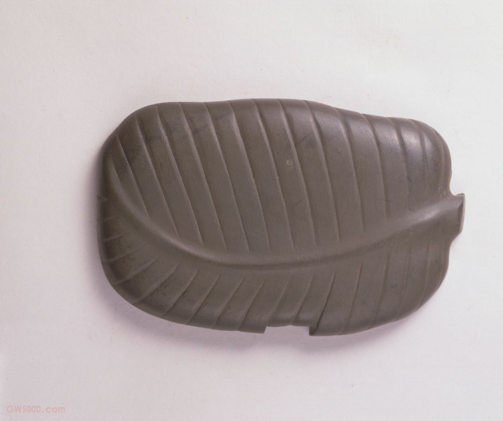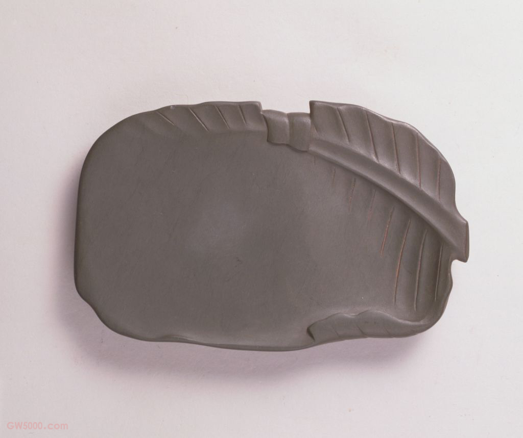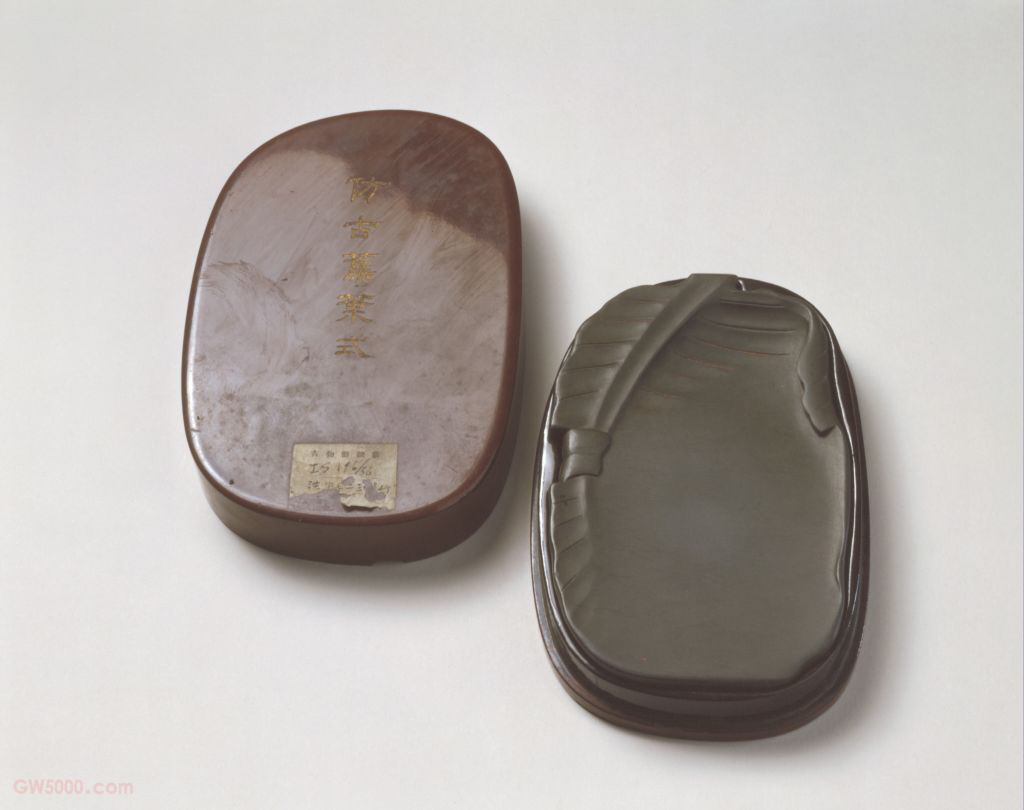 歙石蕉叶砚,清,长15.3厘米,宽9.8厘米,高1.95厘米。清宫旧藏。 砚歙石制,青黑色,通体布满牛毛纹,琢为蕉叶形。砚背雕刻的蕉叶脉纹向内翻卷至砚面左边,活泼而富于天然之趣。砚盒髹朱漆,盒面填金隶书“仿古蕉叶式”。 清代《西清砚谱》卷四收录澄泥蕉叶砚一方,定为宋制,而此砚与之仿佛,大概是其以“仿古”命名的原因。清乾隆朝编著的清内府藏砚的图谱,全书分为二十四卷,集萃清内府藏砚二百余方,上起汉代,下迄清乾隆朝新制。乾隆钦定凡例,每砚皆图、说并茂。“西清”为清代宫内南书房的别称。