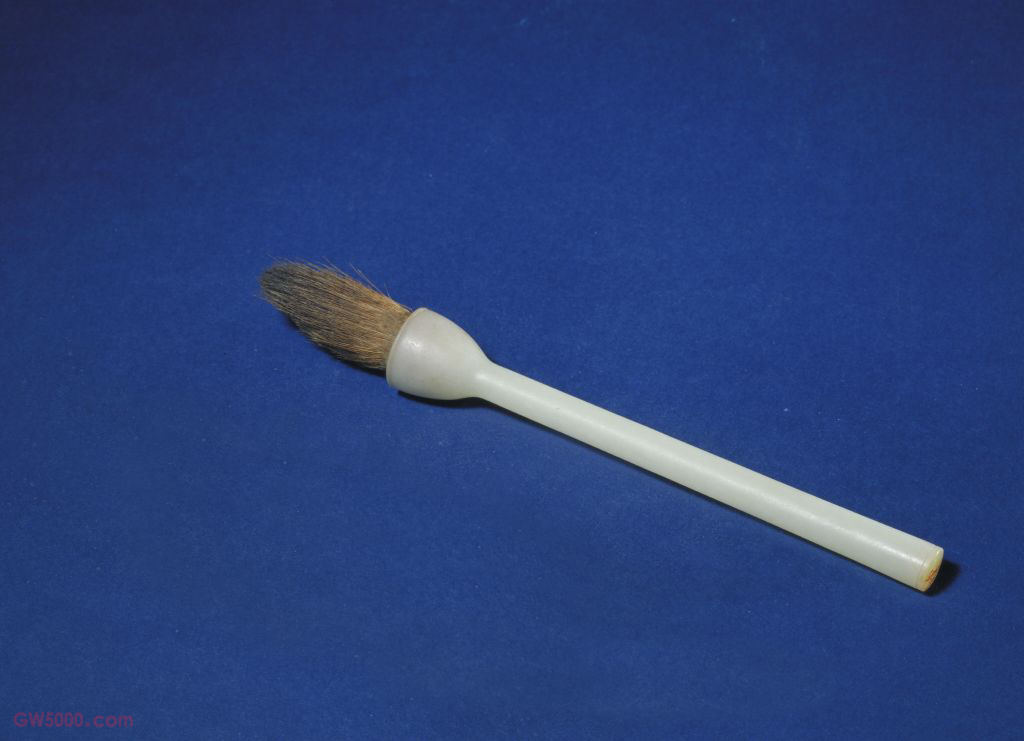 白玉光素斗笔,清,长17.8厘米,管径1.4厘米。 笔管为白玉质,质地上好。通体光素无花纹。 清代文房用品中,笔管的质地很多,有漆、竹、木、象牙、珐琅、玉等。玉管笔中有光素和雕刻纹饰之分。此件玉笔管虽未雕刻任何纹饰,但玉质上佳,打磨光滑,亦是非常精致的文房用具之一。珐琅,又称“佛郎”“法蓝”“琺瑯”,是一外来语的音译词。珐琅的基本成分为石英、长石、硼砂和氟化物,与陶瓷釉、琉璃、玻璃(料)同属硅酸盐类物质。中国古代习惯将附着在陶或瓷胎表面的称“釉”;附着在建筑瓦件上的称“琉璃”;而附着在金属表面上的则称为“珐琅”。 金属胎珐琅器则依据在制作过程中具体加工工艺的不同,可分为掐丝珐琅器、錾胎珐琅器、画珐琅器和透明珐琅器等几个品种。