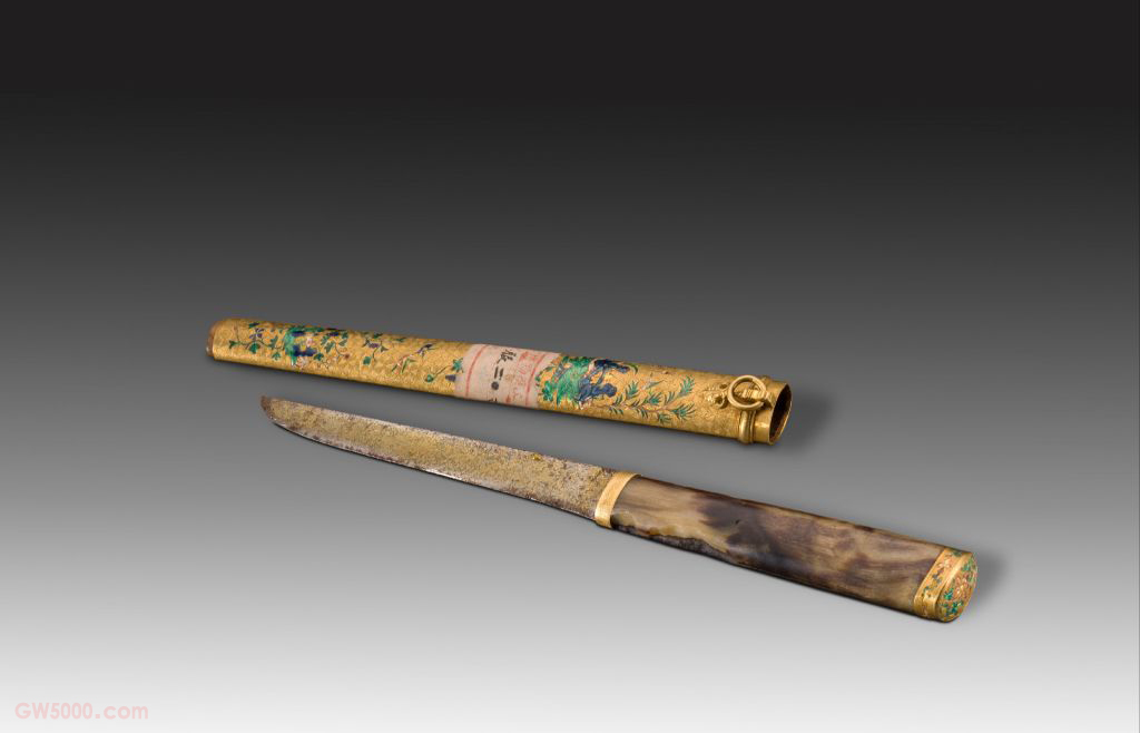 金烧蓝鞘牛角柄小刀