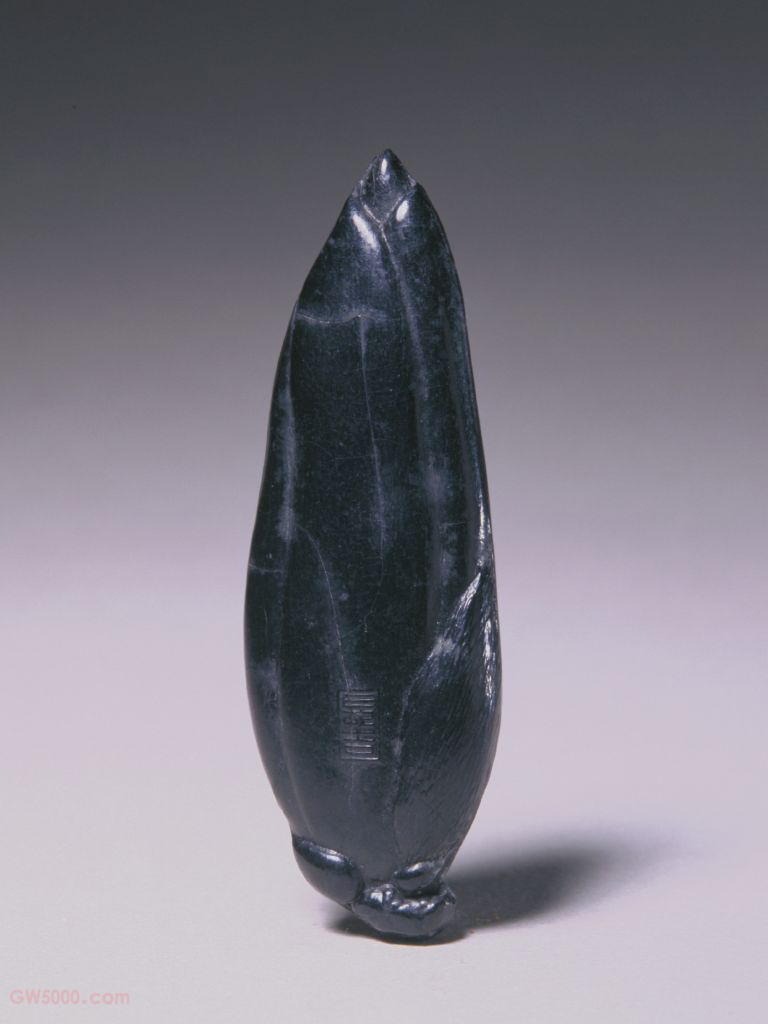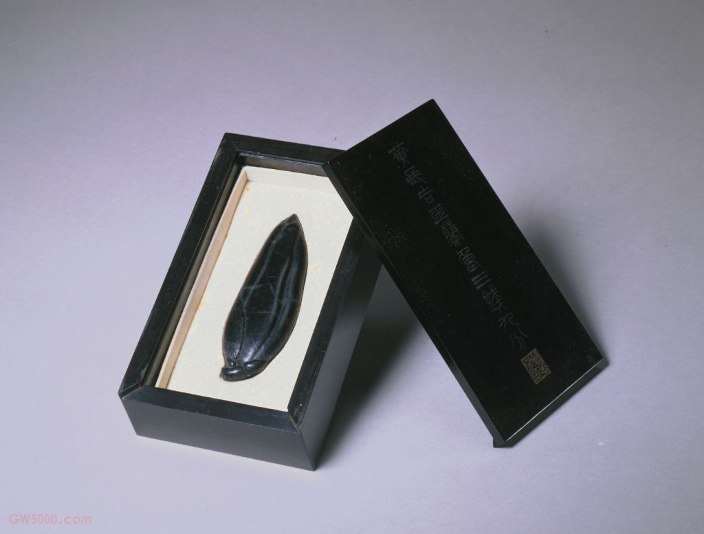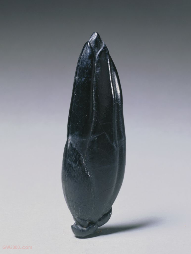 黄长吉玉兰形墨,明万历,高6.8厘米,长径2.3厘米,短径1.1厘米。