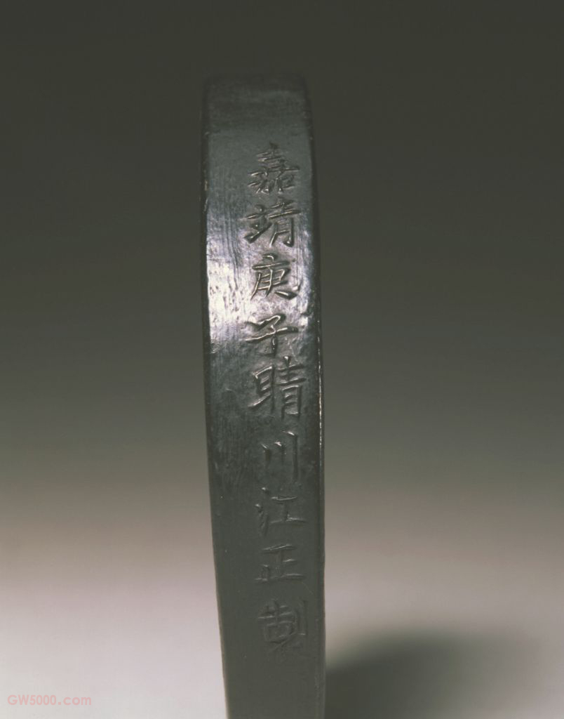 江正制墨在明代麻三衡的《墨志》和清代《渔洋精华录》等书中均有记载,但传世实物仅见此锭。“嘉靖庚子”为嘉靖十九年(1540年),此纪年可佐证文献关于江正生活年代的记载。墨饰螭龙戏水纹始见于明嘉靖时期并流行于晚明,这一题材的时代风格鲜明。此墨见于《中舟藏墨录》,是流传有绪的明墨精品。