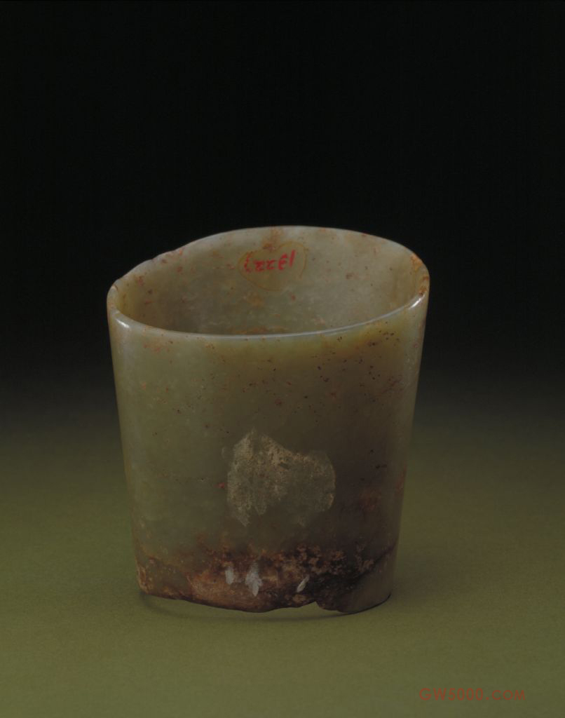 玉马蹄形器,高9.5厘米,上口9-7.1厘米。下口6.9-5.5厘米。新石器时代红山文化。