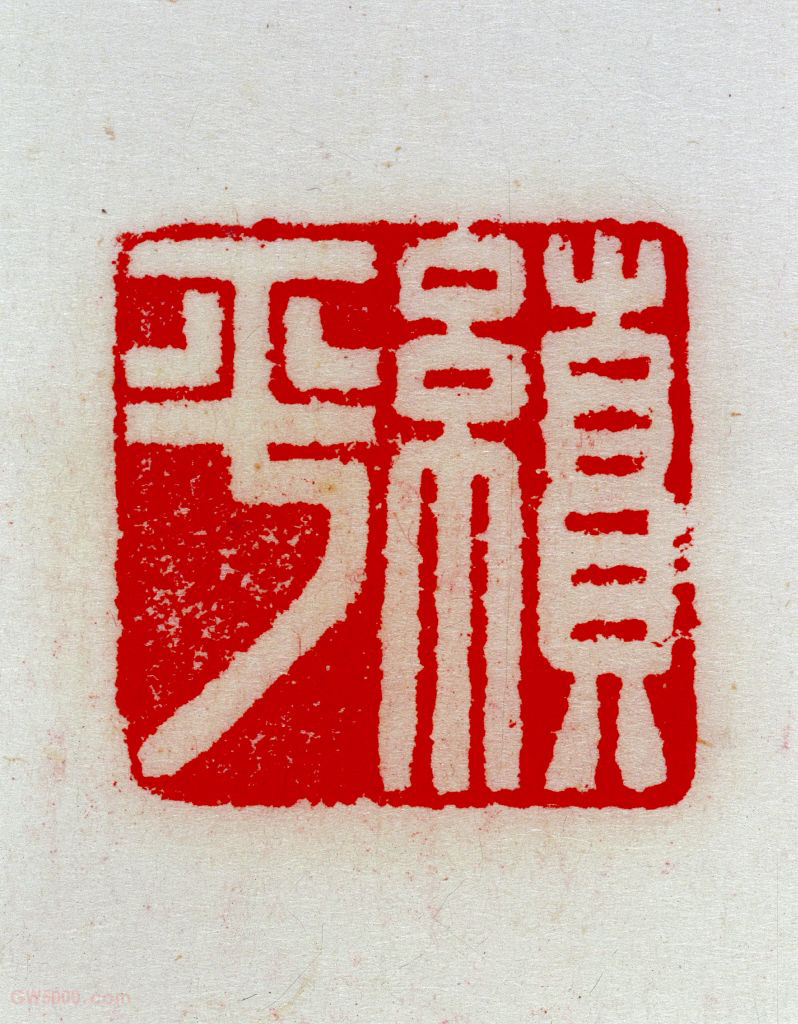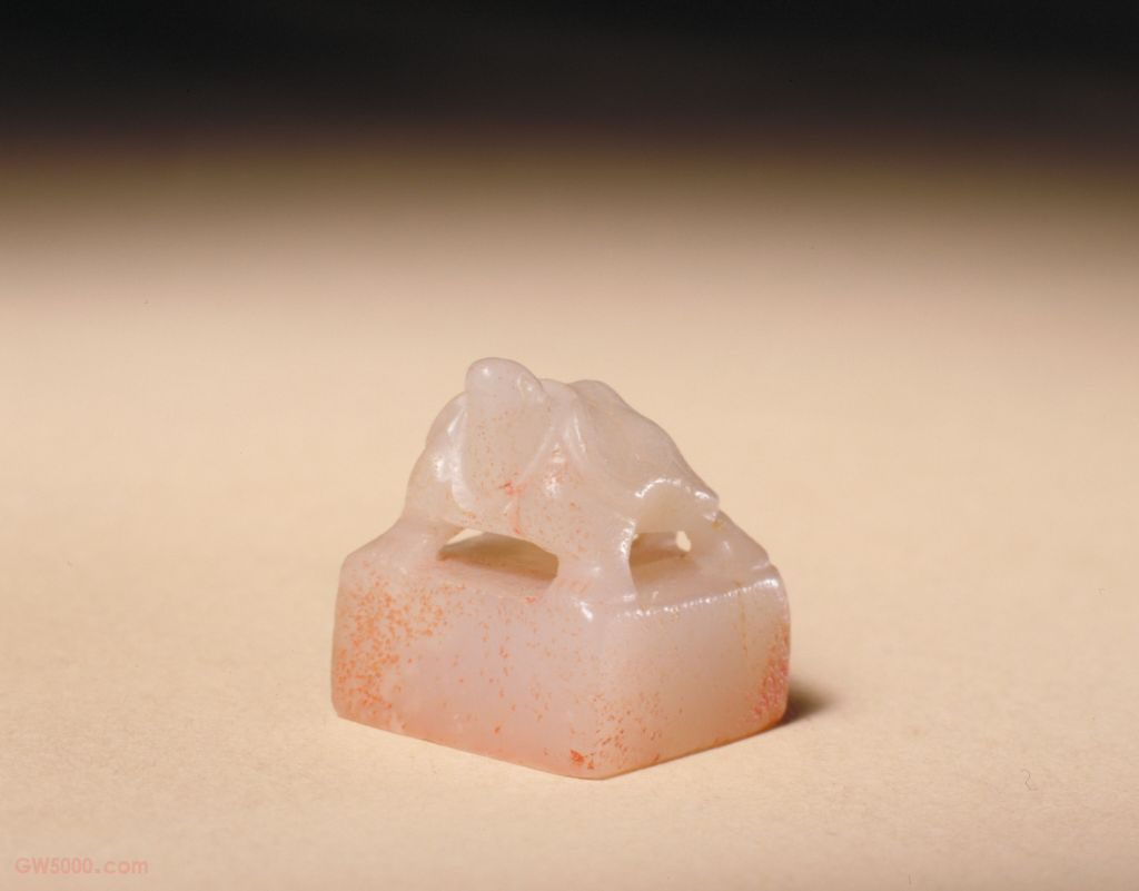 白玉龟钮“绩平”印,汉,印面1.2×1.2厘米,通高1.9厘米。 汉代私印,白玉琢造,龟钮,印文字体为汉篆,白文,右起横读“绩平”二字。印文为典型的汉代私印印文。“绩”字右下两点笔画由窄变宽,撇向两边,底部横平加宽,恰如东汉铜铸私印同样的印文;“平”字上部紧凑,竖笔下行后再横拉,转成较大弧形后再曳向印面一角,这也正是东汉私印中印文末笔的典型处理方式。 龟形印钮背饰环甲,背甲中部棱微凸起,龟身以四足撑起,首微上抬,似欲爬行。此类形态的龟钮只在新莽时期以后的一段时期内出现,是具时代标志性的造型。 此印白玉通体一色,润泽细腻,光莹而不暴露,材质与制作俱佳,是汉代玉印中的至精至美之物。