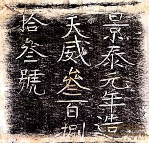 这件火铳由前膛、药室和尾銎组成,药室有小孔,用于放置导火线,铳身刻有“景泰元年造,天威叁百捌拾叁号”字样。明代用火铳装备军队自永乐年间(公元1403~1424年)开始,当时铳炮有大有小,大的用车载发射,用于守城;小的用支架托桩发射,用于冲锋陷阵。明朝政府设兵仗、军器二局,专门研制铳炮。明前期火铳可连续三发,射程达三百步。明后期火铳长约2米,重约700公斤,轻的也有约80公斤,可连发十次,最远达七百步。这件铜铳,制造于景泰元年(公元1450年),当时正是国家危机,战事紧张之时:上一年蒙古瓦剌部在土木堡击溃明政府军,俘虏明英宗朱祁镇,并挟持英宗大举进攻北京,受到民族英雄于谦率领的北京军民顽强抵抗,瓦剌部失败而归。