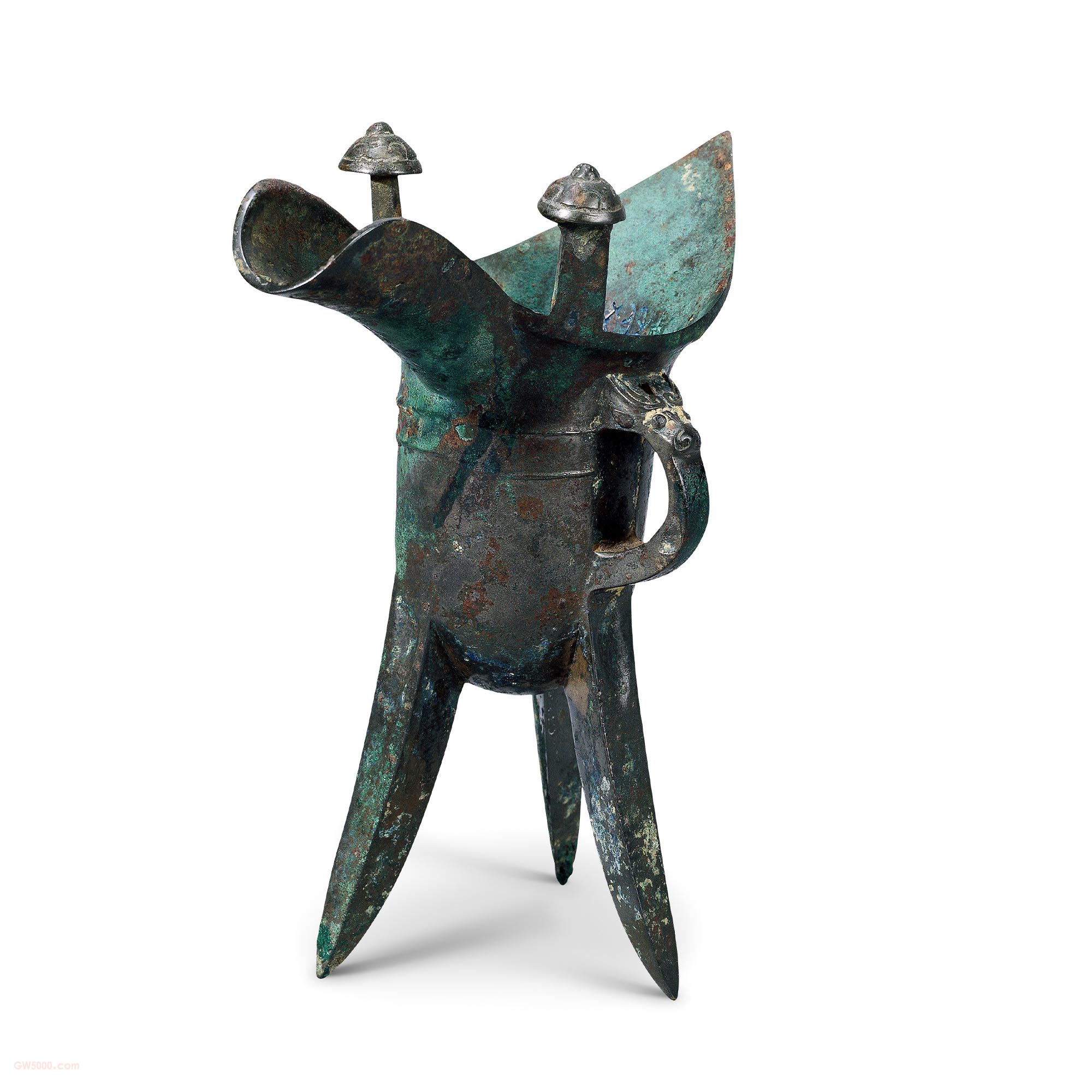 器菌状柱,杯体较长,壁较直,兽首鋬,圜底,下承三棱锥状足。器柱上饰涡纹,杯体上部饰两周弦纹。器尾内壁铸有铭文2行6字:“