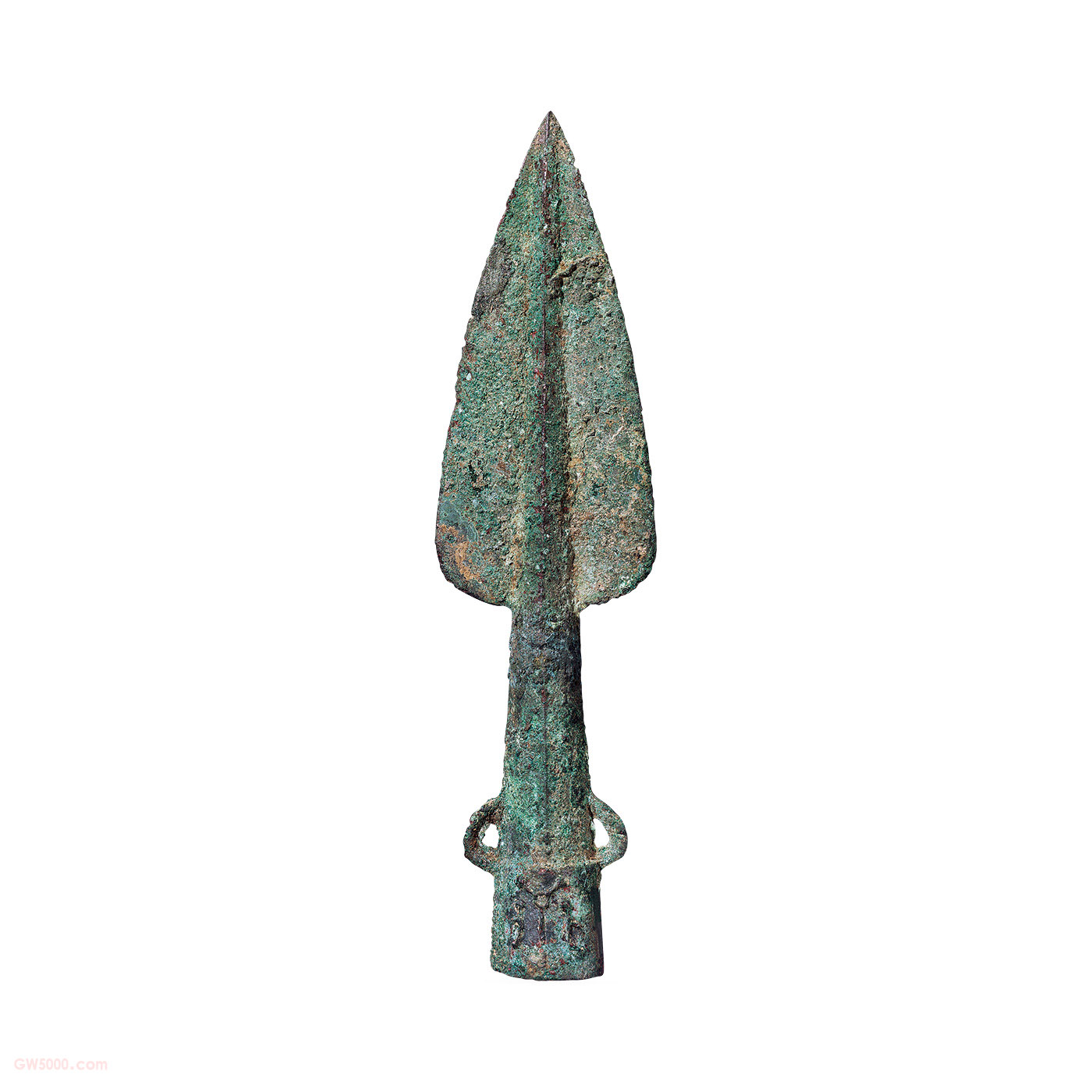 器刃似阔叶状,最宽处位于两翼底端,骹部较长,横截面作菱形,附双系。器骹部下端铸图形。此图中二人相背,中间有一物。二人相背,即“北”字初形。中间之物如某种武器之形,亦即“单”字初文。由此可知,“单”为独体象形字,东汉许慎《说文解字》云单为会意兼形声错误。
