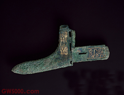 这件青铜戈胡部有6个工整的错金鸟篆铭文,“宋公栾之造戈”。“宋公栾”是宋国第27任国君宋景公,周敬王四年(公元前5l6年)即位,卒于周贞定王十八年(公元前451年)。
