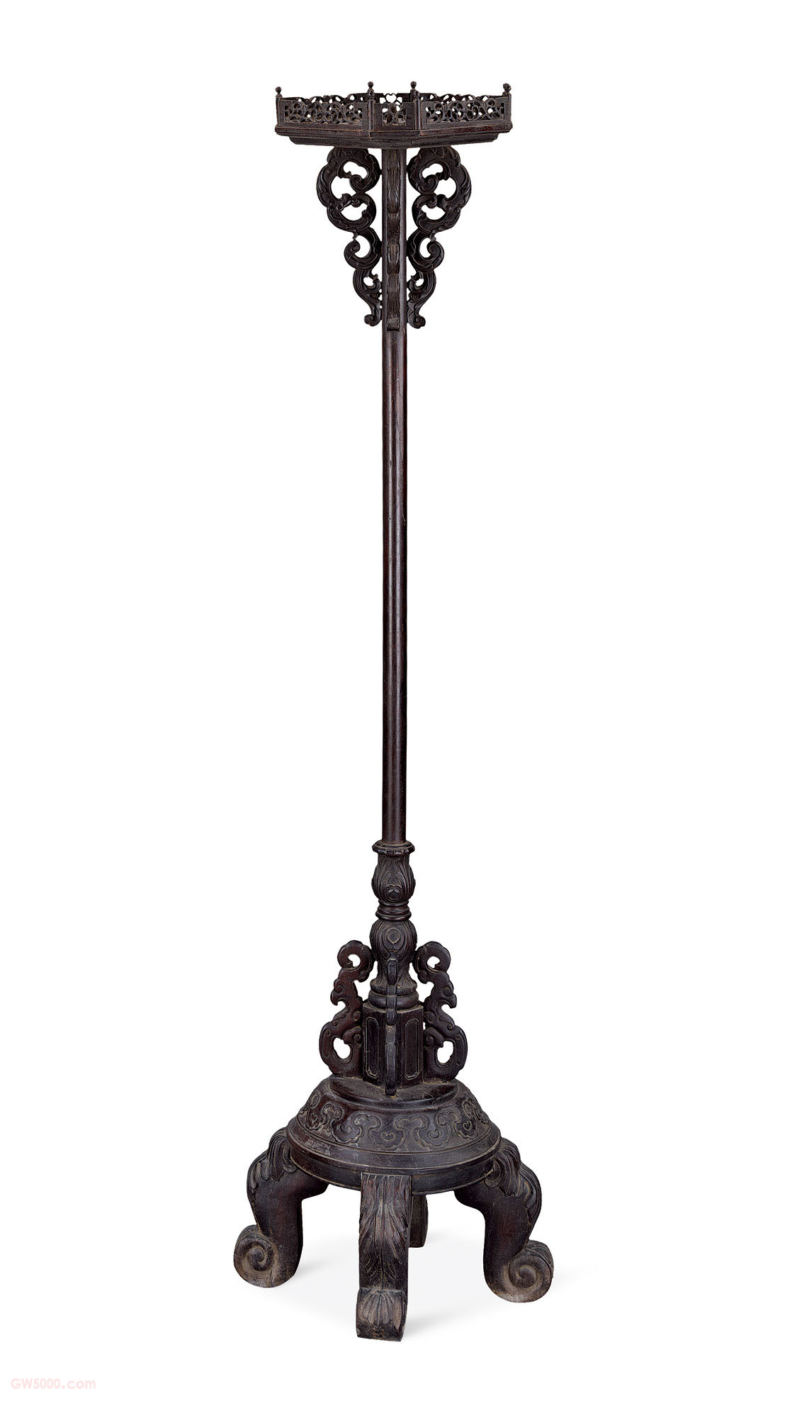 紫檀四足雕花灯架