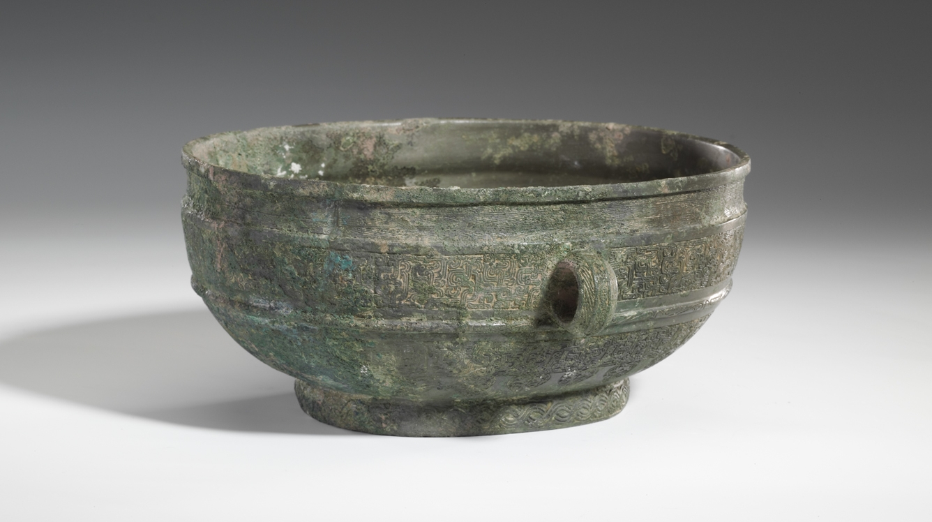 椭圆形,束颈,厚唇微敛,腹略鼓,小圜底,下接圈足。腹壁有一对环形耳,腹部饰宽、窄两周细夔龙纹,龙互相缠合。下腹部有垂叶纹,垂叶内用相向夔龙做填纹。上下纹带间以凸弦纹为界纹,上刻勾云纹。舟为饮酒器,是春秋中期以后出现的新器形。