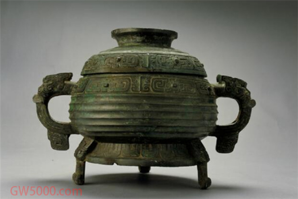 上有盖,盖隆起,顶部有圆形捉手;器身子口微内敛,鼓腹,兽形双耳且带垂珥,微圜底,圈足外侈,下有三虎头状矮足。通体用瓦纹、窃曲纹及垂鳞纹等装饰。器与盖对铭,铭文44字,系申国之相中爯父为祭祀其祖、父两代人所作。